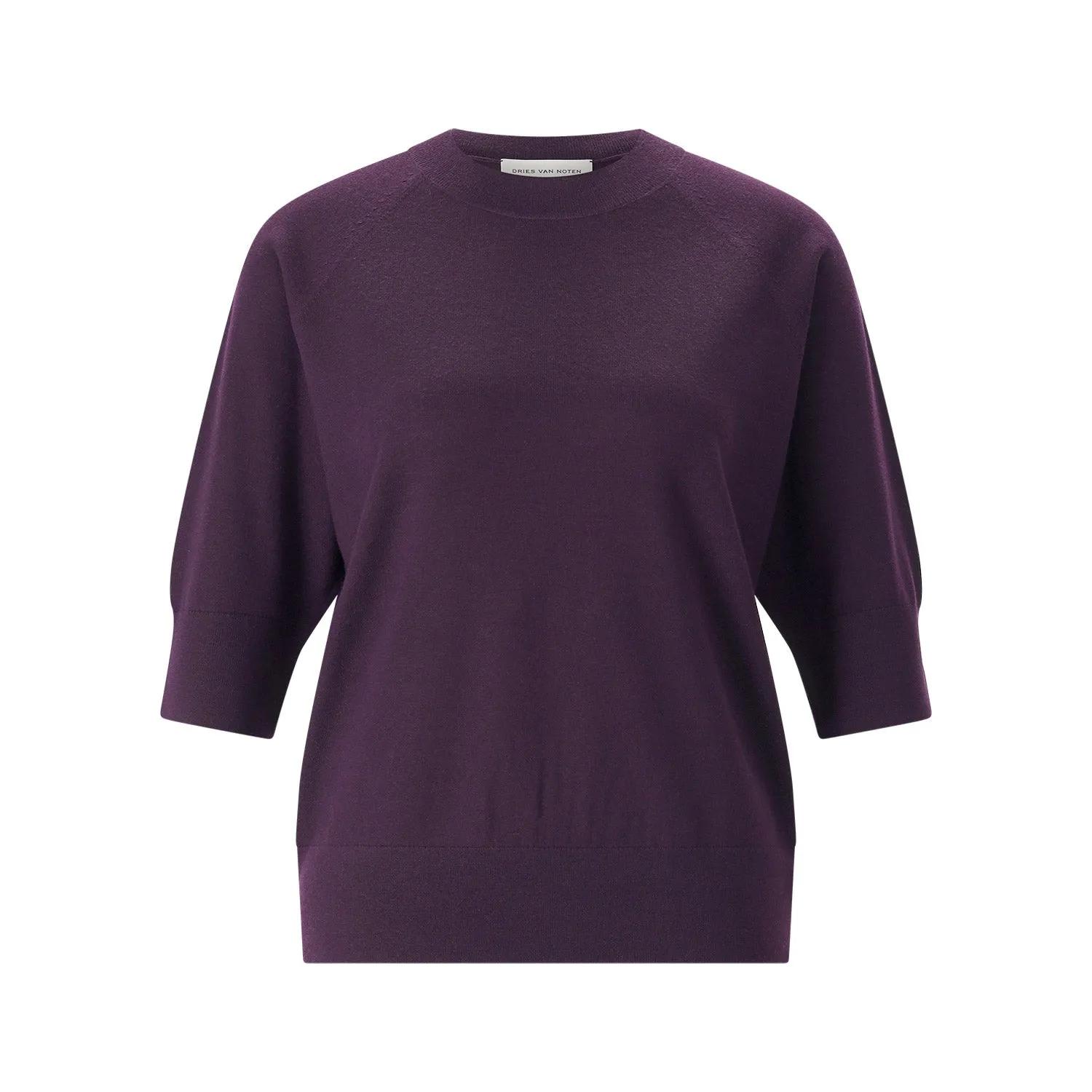 Dries Van Noten - Kurzarmpullover Tuan aus Merinowolle - Größe L - violett