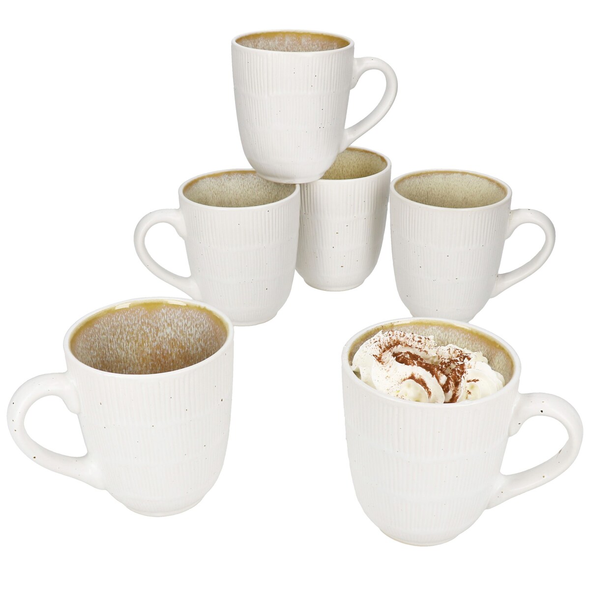 TZIA 6er Set Kaffeebecher Steingut Weiß Vanille Kaffee Tee Tasse