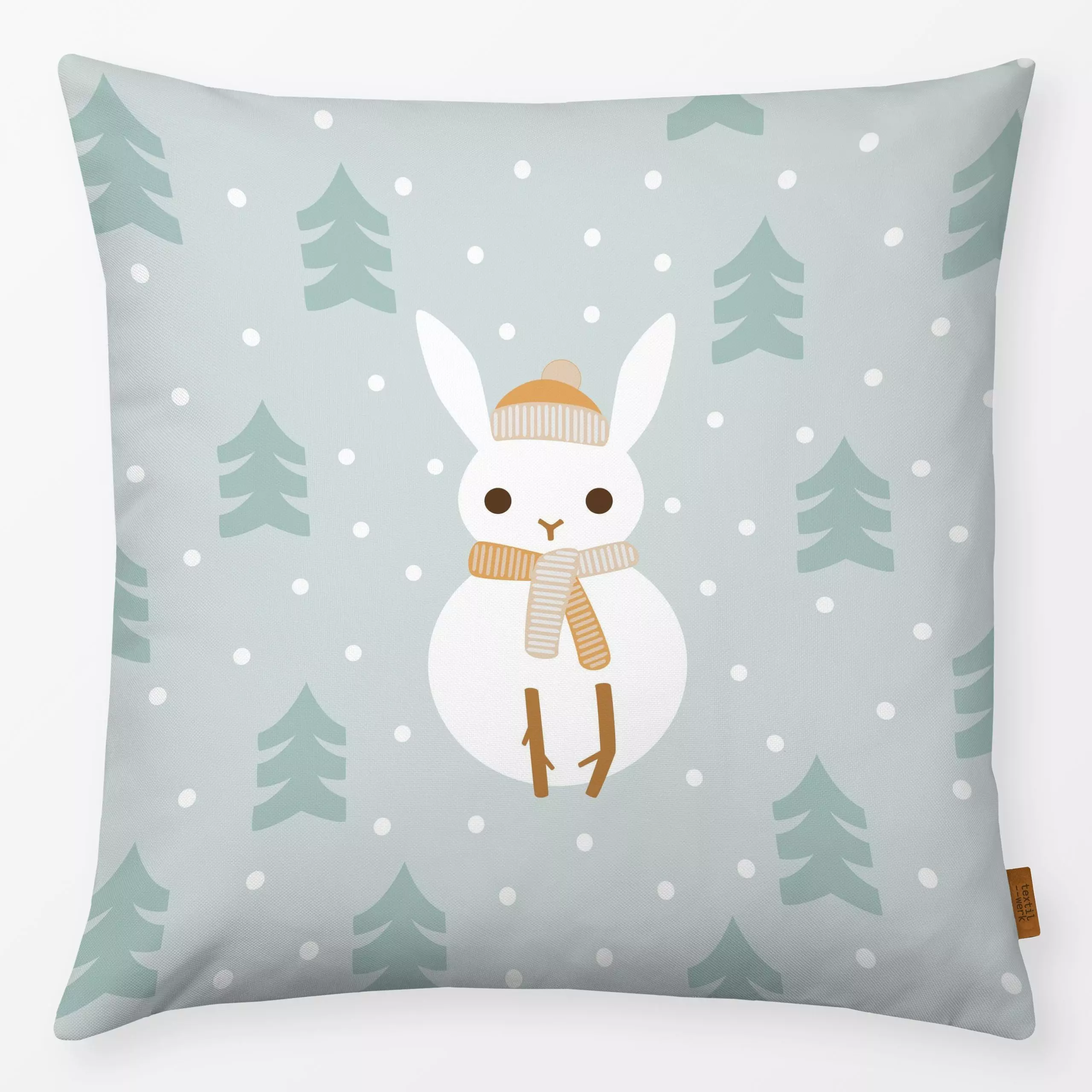 Kissen Hase Schneemann - Kinderzimmer & Motive für Kinder, Tiere, Winter - von „Heleen van Buul"; Kinder, Schneeflocken, Wei...