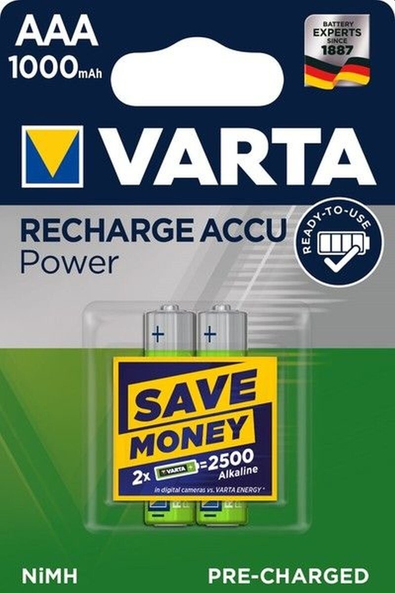Varta Recharge Accu Power Batterien, AAA, 800mAh, 2er-Pack