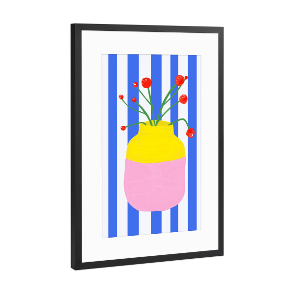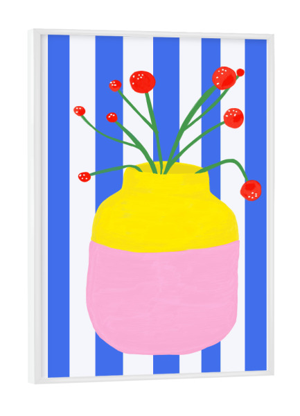 Poster mit weißem Rahmen "Mio Vaso blue stripes" artboxONE - Floral - Mio,Vaso,Vase,Blumen,Blumenvase,Motalamio,Flowers,Trend,Bunt,Getreift,Streifen