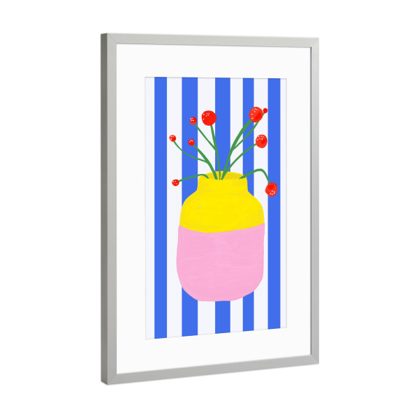 Poster mit Rahmen Silber "Mio Vaso blue stripes" artboxONE - Floral - Mio,Vaso,Vase,Blumen,Blumenvase,Motalamio,Flowers,Trend,Bunt,Getreift,Streifen