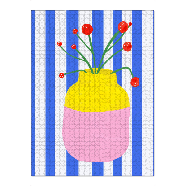 Puzzle Ravensburger "Mio Vaso blue stripes" artboxONE - Floral - Mio,Vaso,Vase,Blumen,Blumenvase,Motalamio,Flowers,Trend,Bunt,Getreift,Streifen