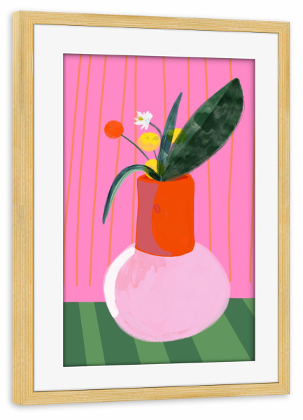 Poster mit Rahmen kiefer "Mio Vaso pinky love" artboxONE - Floral,Abstrakt - Vaso,Mio,Motelamio,Blumen,Blumenstrauss,Vase,Pink,Rosa,Flowers,Trend