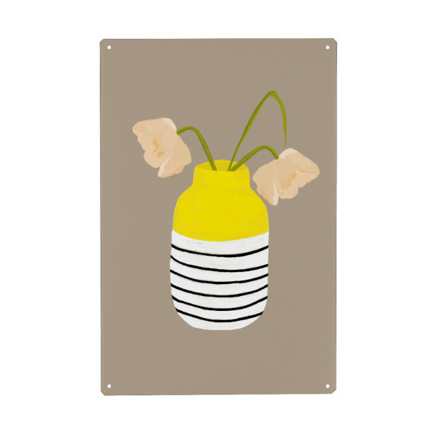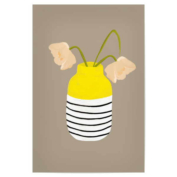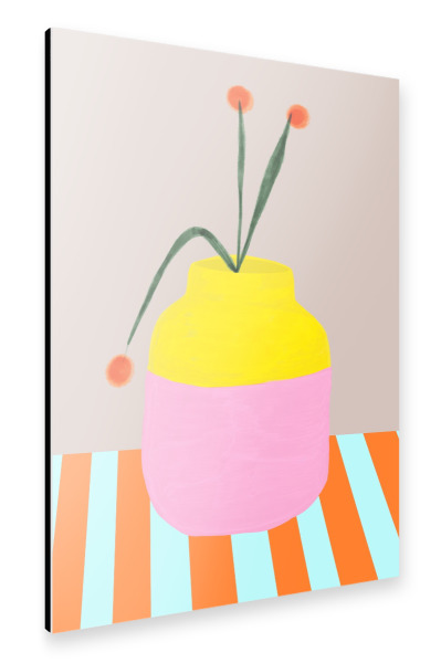 Holzbild "Mio vaso lemon" artboxONE - Floral - Mio vaso,Vase,Blumen,Blume,Getreift,Streifen,Gelb,Vasen,Motelamio,Minimalistisch,Trend,Modern,Cool