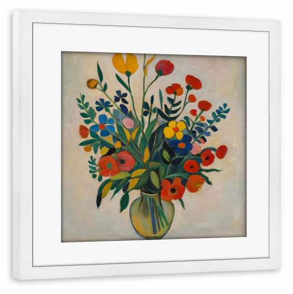 Poster mit Rahmen weiß "Vase mit roten Blumen" artboxONE - Floral - Vaso,Flores vermelhas,Flores amarelas