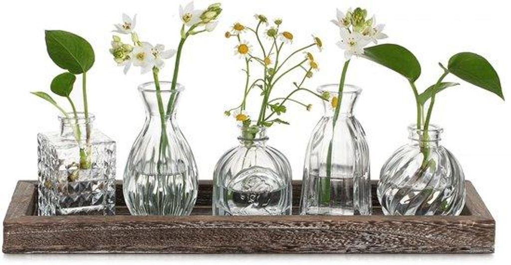 Kleine Houten Mini Vazen Set mit Glas für Wohnzimmer Dekoration