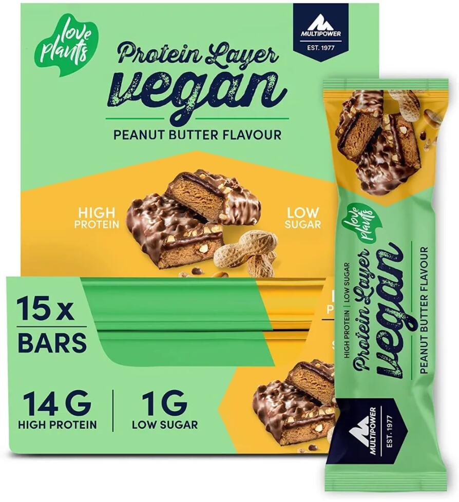 Multipower Vegan Protein Layer Bar, 15 x 55g Riegel, Peanut Butter