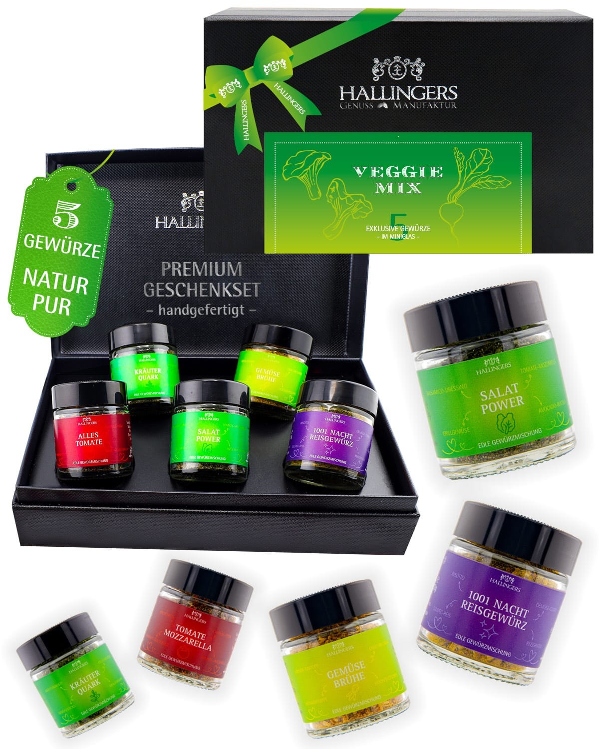 Vegetarische Grillgewürze Geschenkset – 5 Premium Gewürze zum Grillen & BBQ in edler Geschenkbox, Gewürze Set "Veggie Mix", Geschenkidee für Männer &