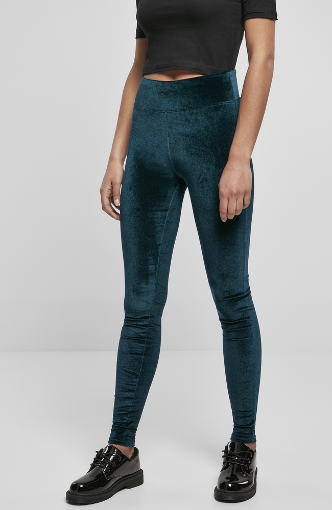 Urban Classics Damen Leggings Ladies High Waist Velvet Leggings Teal - Damen