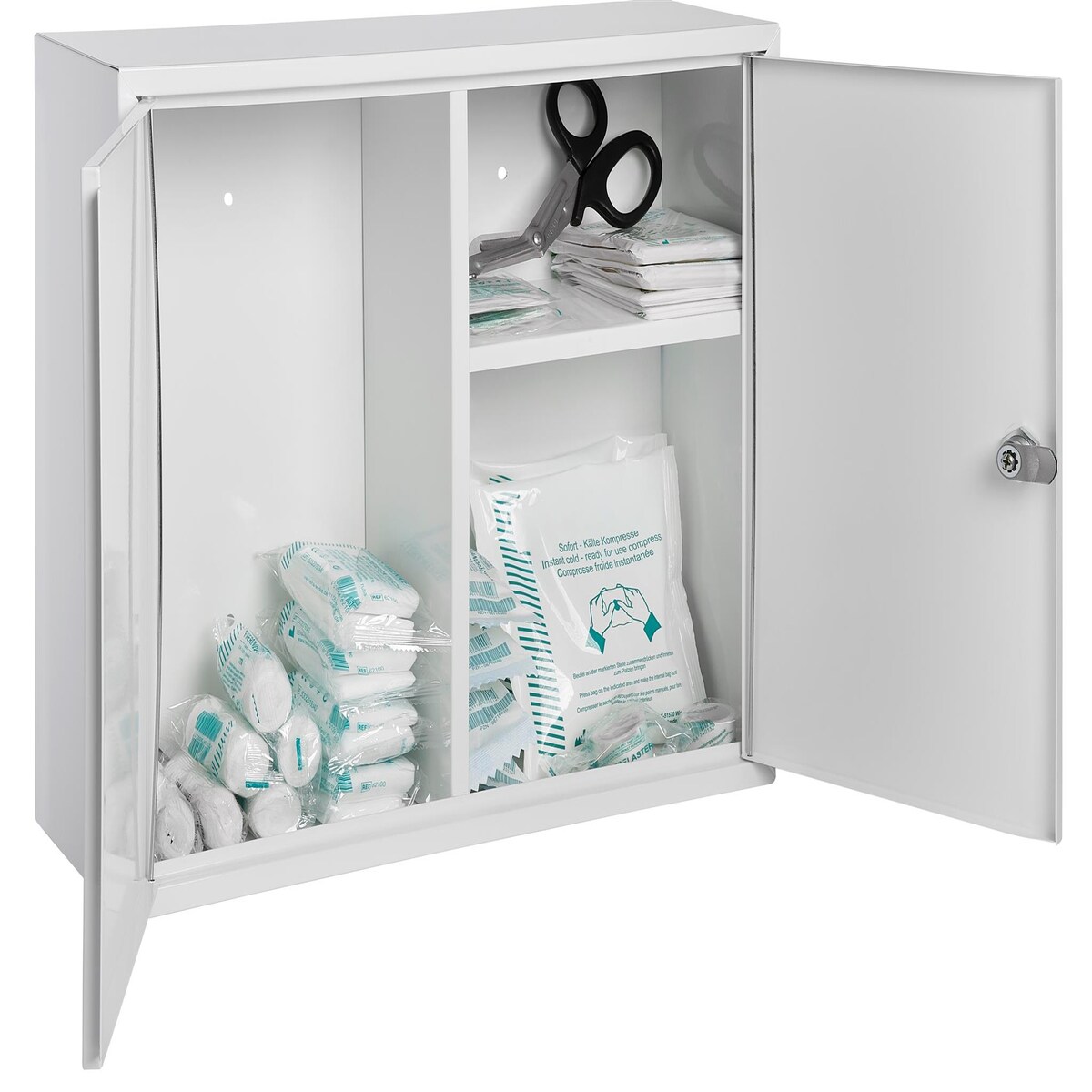 Erste-Hilfe Verbandschrank A leer | Metall, 2 Fächer, weiß, abschließbar | geeignet für DIN 13157 Füllung