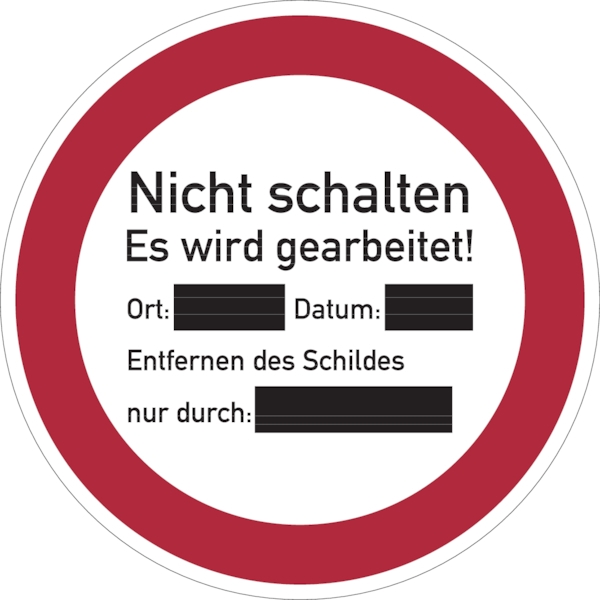 Verbotsschild, Nicht schalten, Es wird gearbeitet!, 200 mm - praxisbewährt - 200x1.5 mm Kunststoff