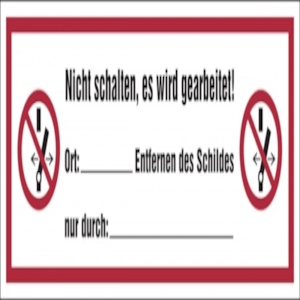 Verbotsschild, Nicht schalten, es wird gearbeitet, 74 x 210 mm - ASR/ISO 7010 - 210x74 mm Folie selbstklebend