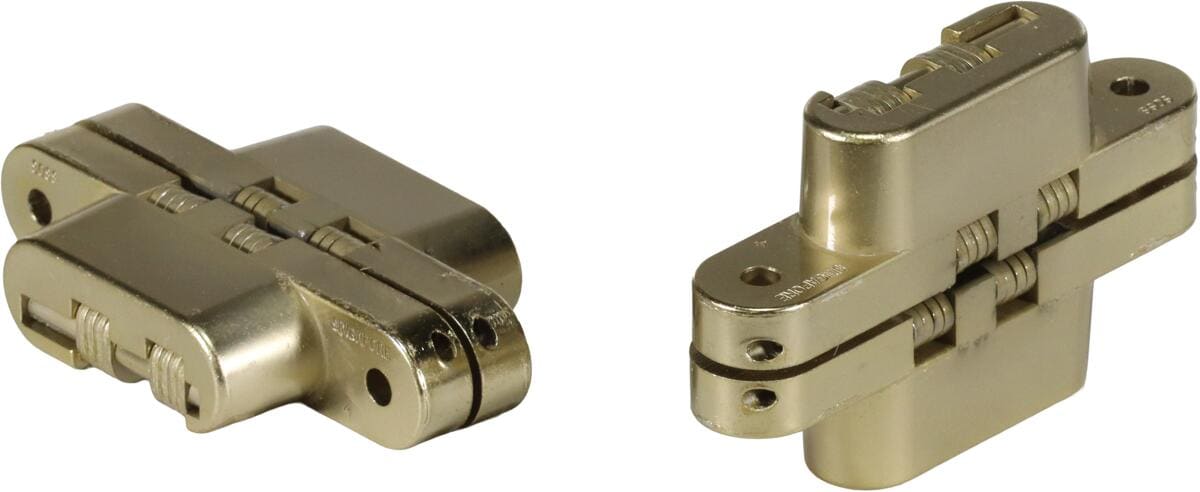 Unsichtbares Türscharnier, Kreuzfaltscharnier, Zinklegierung, verdecktes Scharnier, rechts offen, 9,5 x 2,3 cm, Möbelbeschläge