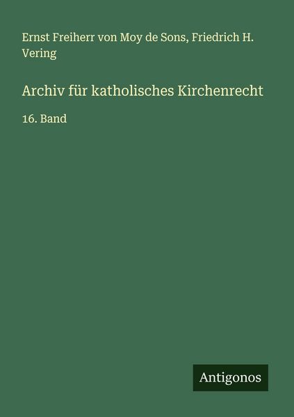 Archiv für katholisches Kirchenrecht, Taschenbuch von Ernst Freiherr Moy de Sons , Friedrich H. Vering, Antigonos Verlag, 9783563923986
