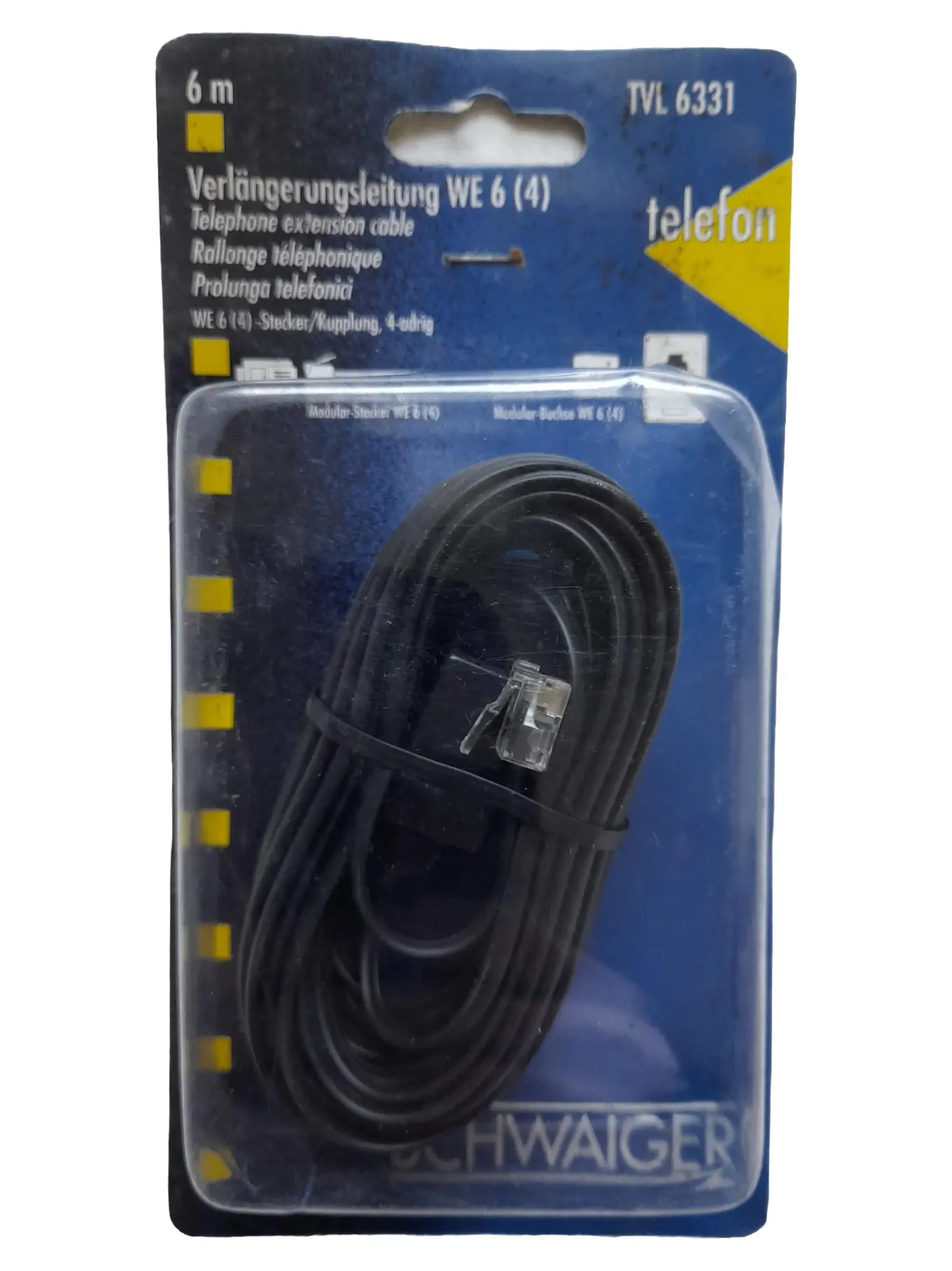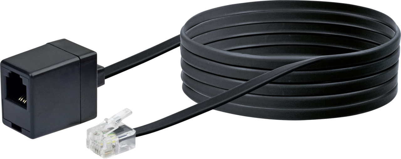 SCHWAIGER Telefon Verlängerungskabel 6m WE 6 (4) Schwarz für Schnurgebundenes Telefon