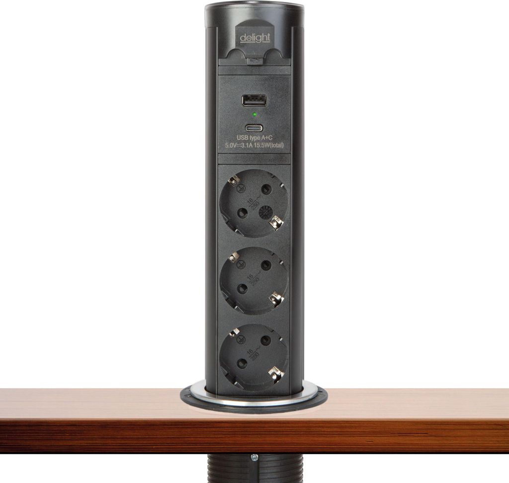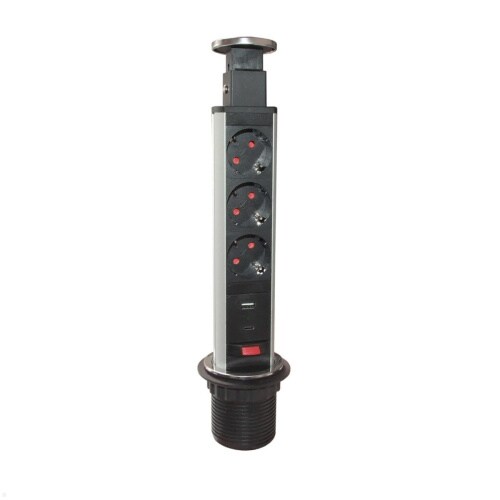 DesignLight TETRABOX versenkbare 3-fach Schuko-Steckdose mit USB-Port / Steckdosenleiste / Schuko-Verteiler
