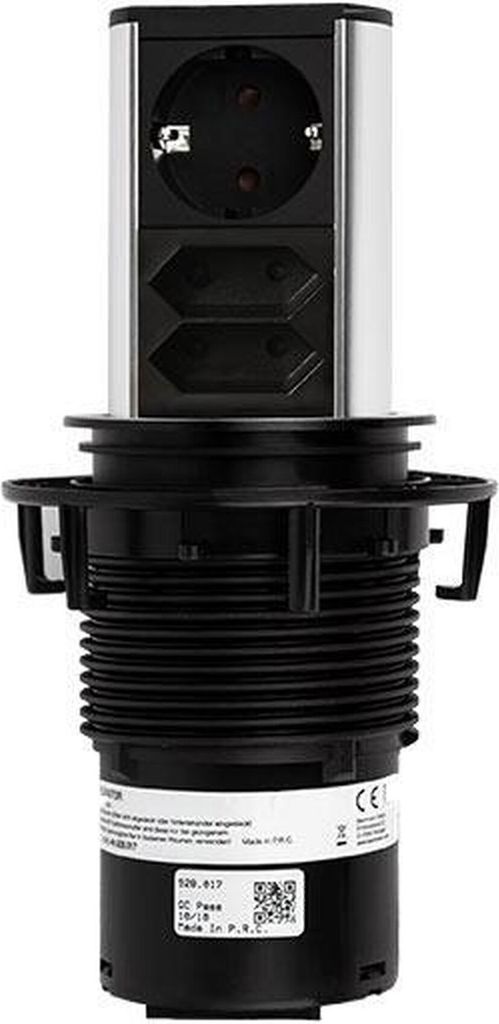 Evoline Port Push versenkbare Steckdose mit 3x VDE Steckdose Edelstahl / Schwarz
