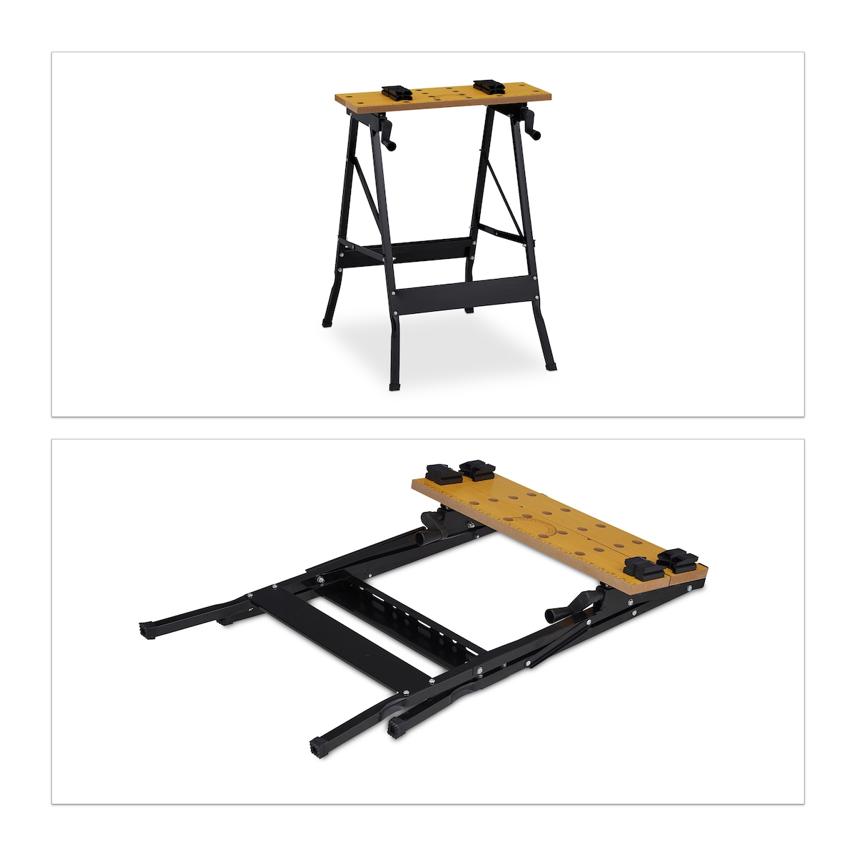 Relaxdays Werkbank klappbar, bis 100 kg, verstellbarer Arbeitstisch, 4 Spannbacken, HBT 75,5 x 56 x 62 cm, natur/schwarz