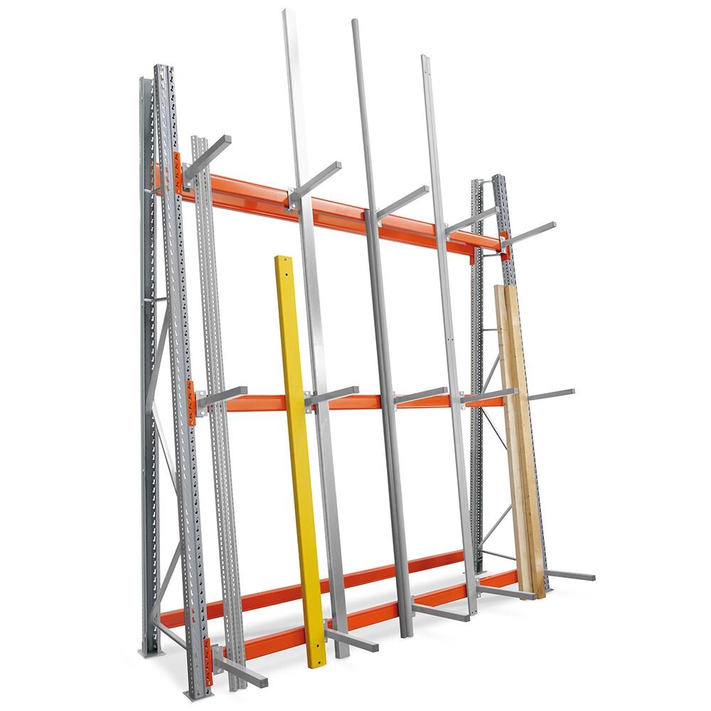 Vertikalregal einseitig TAURUS | Grundregal | HxBxT 350x270x100cm | Vertikallast 1200kg | Silbergrau/Reinorange