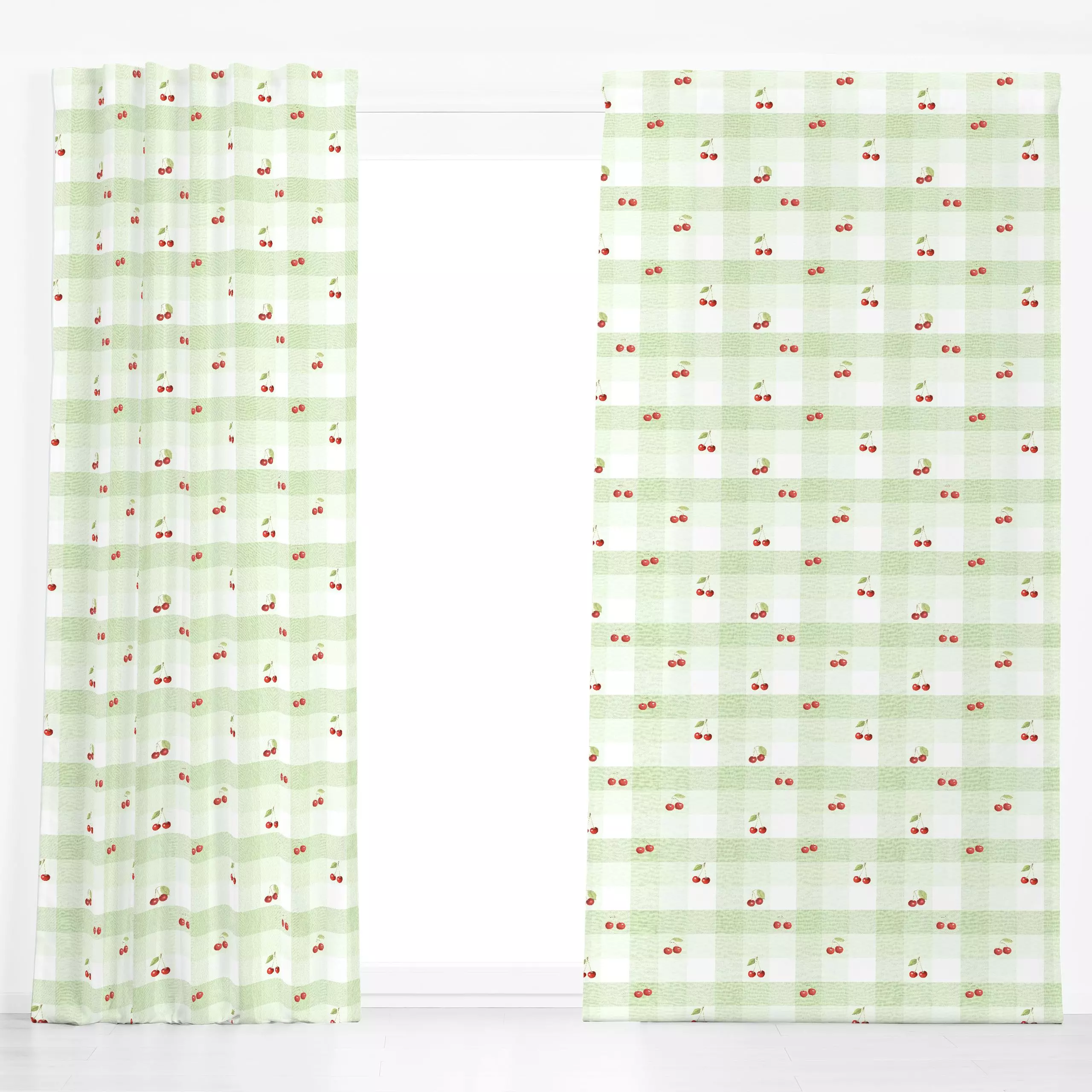 Dekovorhang Vintage Cherry Gingham I - Symbole & Muster, Küche, Essen & Trinken, Früchte - von „Bloomery Decor"; Früchte, su...