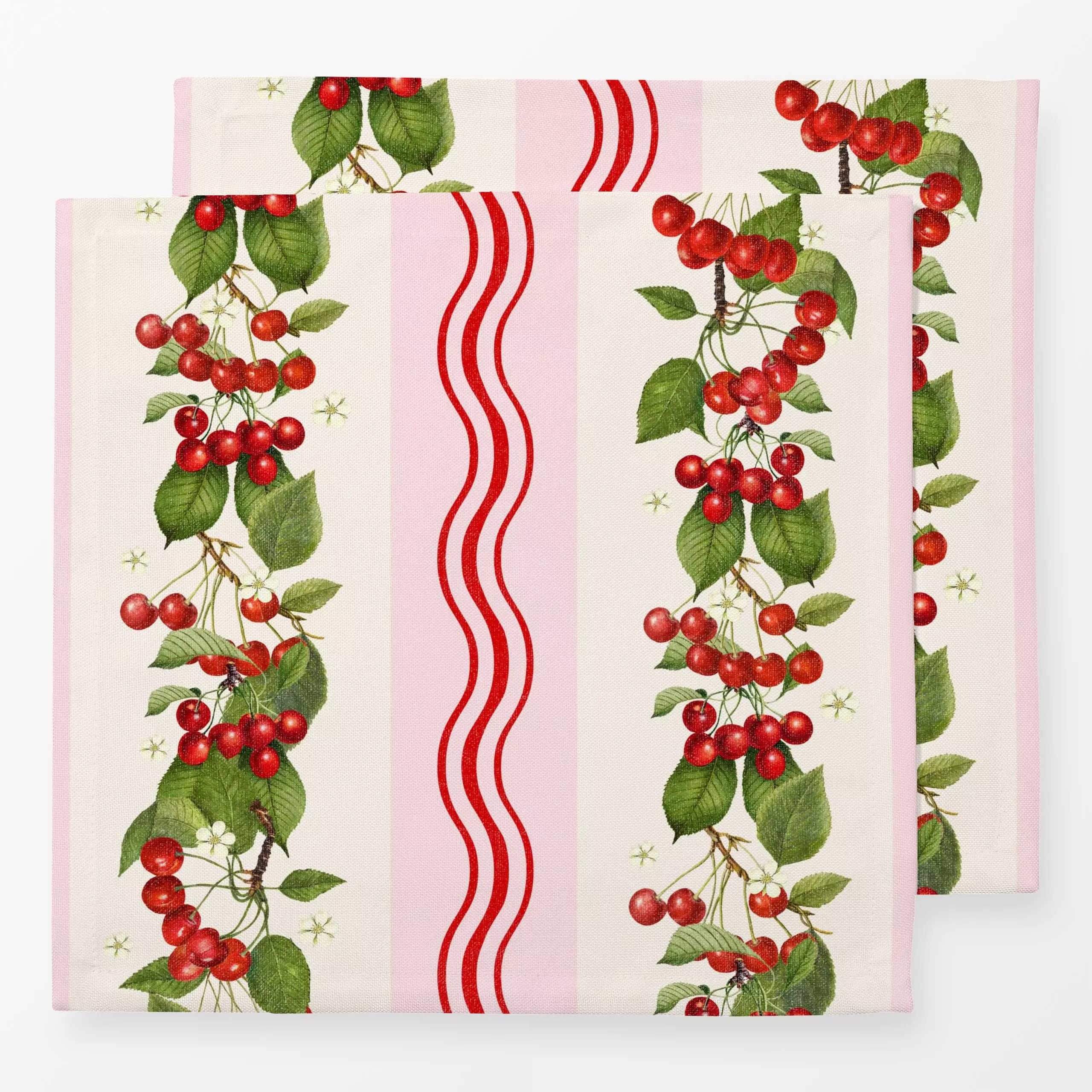 Servietten Preppy cherry waves I - Blumen & Florales, Symbole & Muster, Früchte - von „Bloomery Decor"; Retro, Früchte, Kirs...
