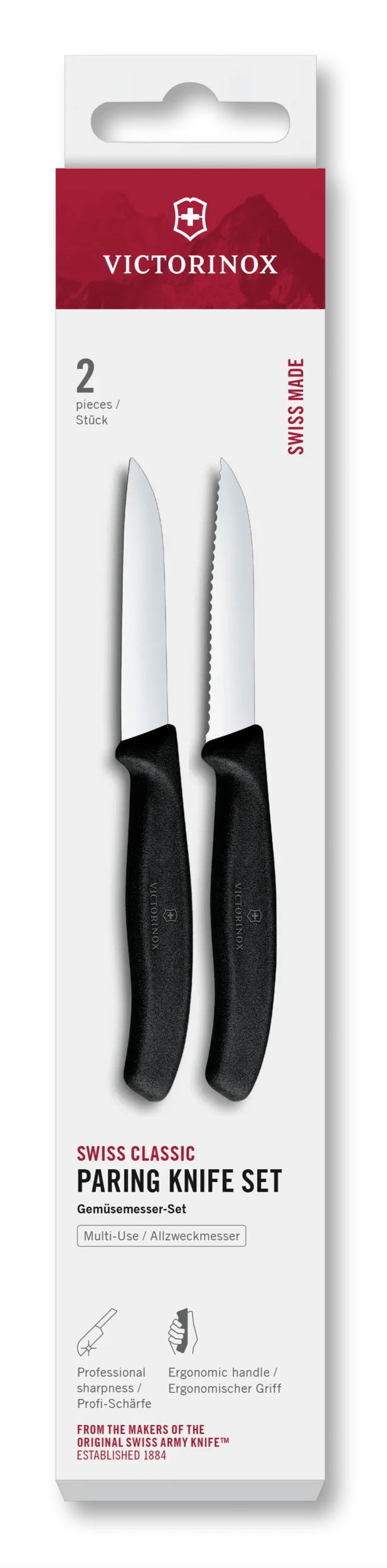 Victorinox Swiss Classic Schälmesser – 2 Stück – Spitze Klinge 10 cm – Gezackt / Gerade