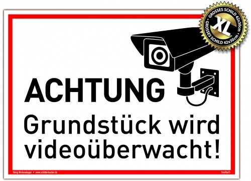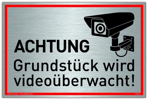 Dreifke Schild Grundstück wird videoüberwacht! Silber | stabiles Alu Schild ...