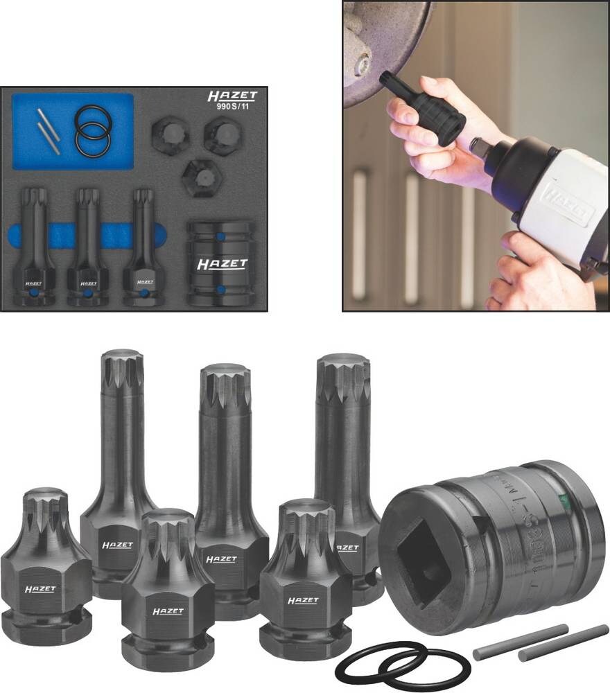Hazet 990S/11 Außen-Sechskant, Innen-Vielzahn (XZN) Kraft-Steckschlüsseleinsatz-Set 11teilig 1/