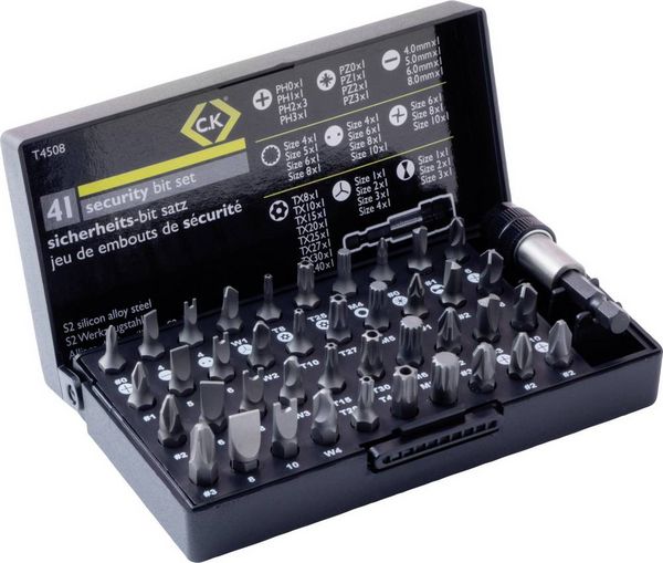 C.K T4508 Bit-Set 41teilig Schlitz, Kreuzschlitz Phillips, Kreuzschlitz Pozidriv, Sechsrund BO, Innen-Vielzahn (XZN), Spanner, TORQ, Tri-Wing