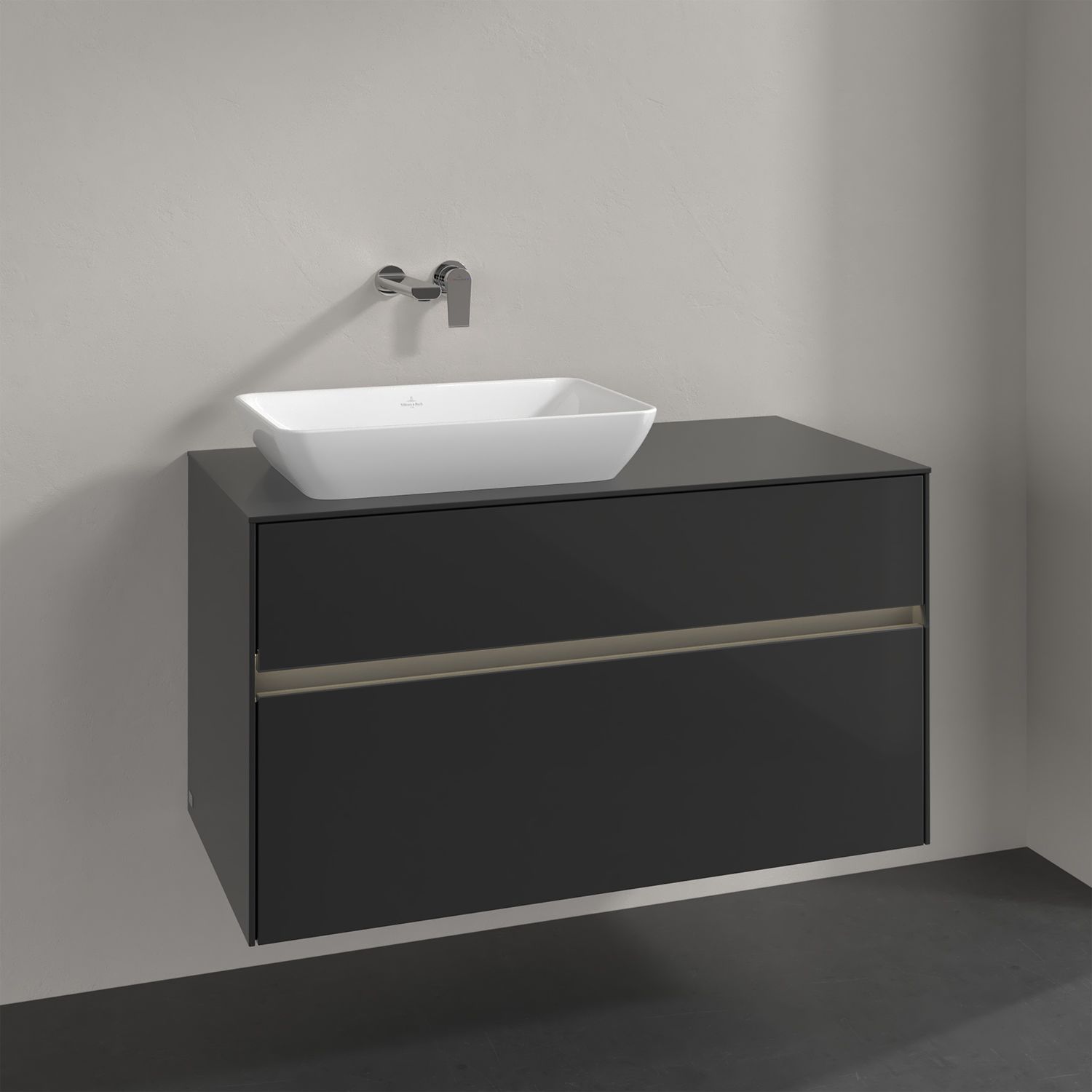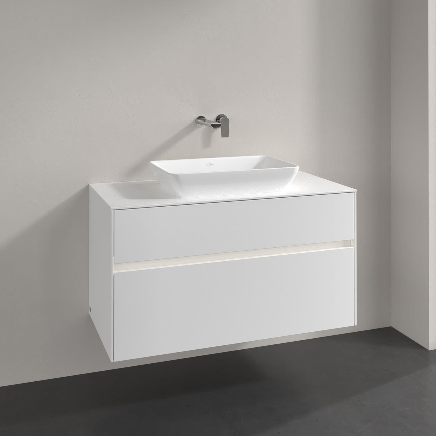Villeroy & Boch Collaro Waschtischunterschrank 100 x 50 cm, mit 2 Auszügen und LED-Beleuchtung für Venticello Waschtisch, Badmöbel,