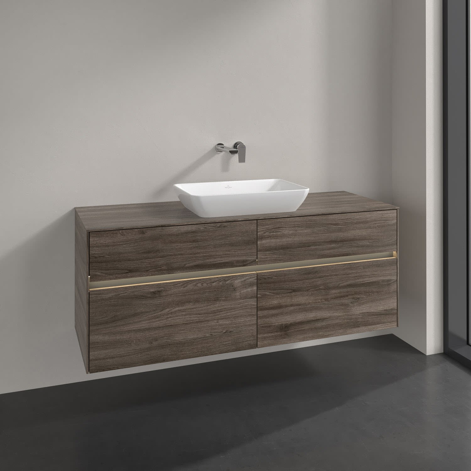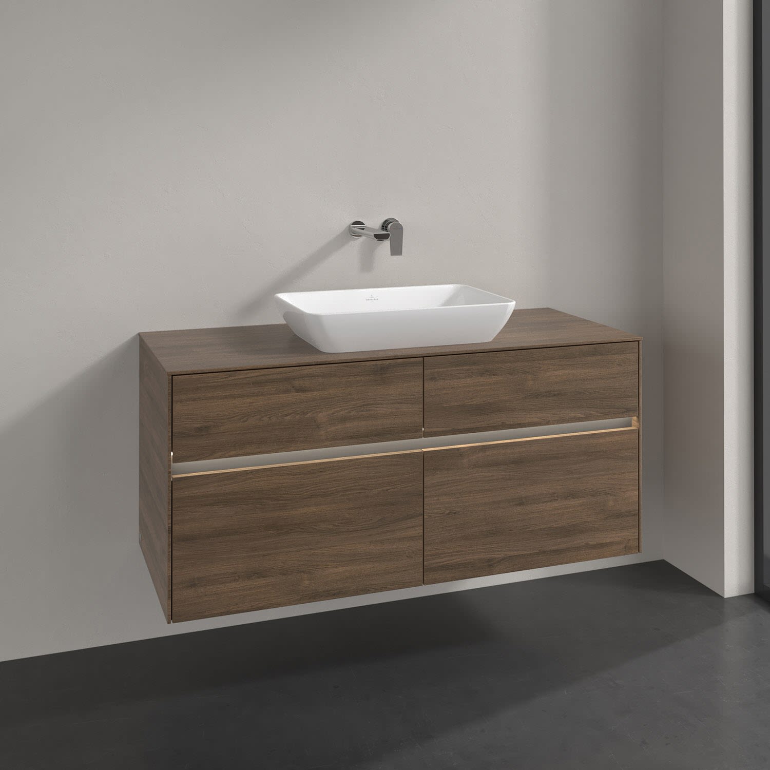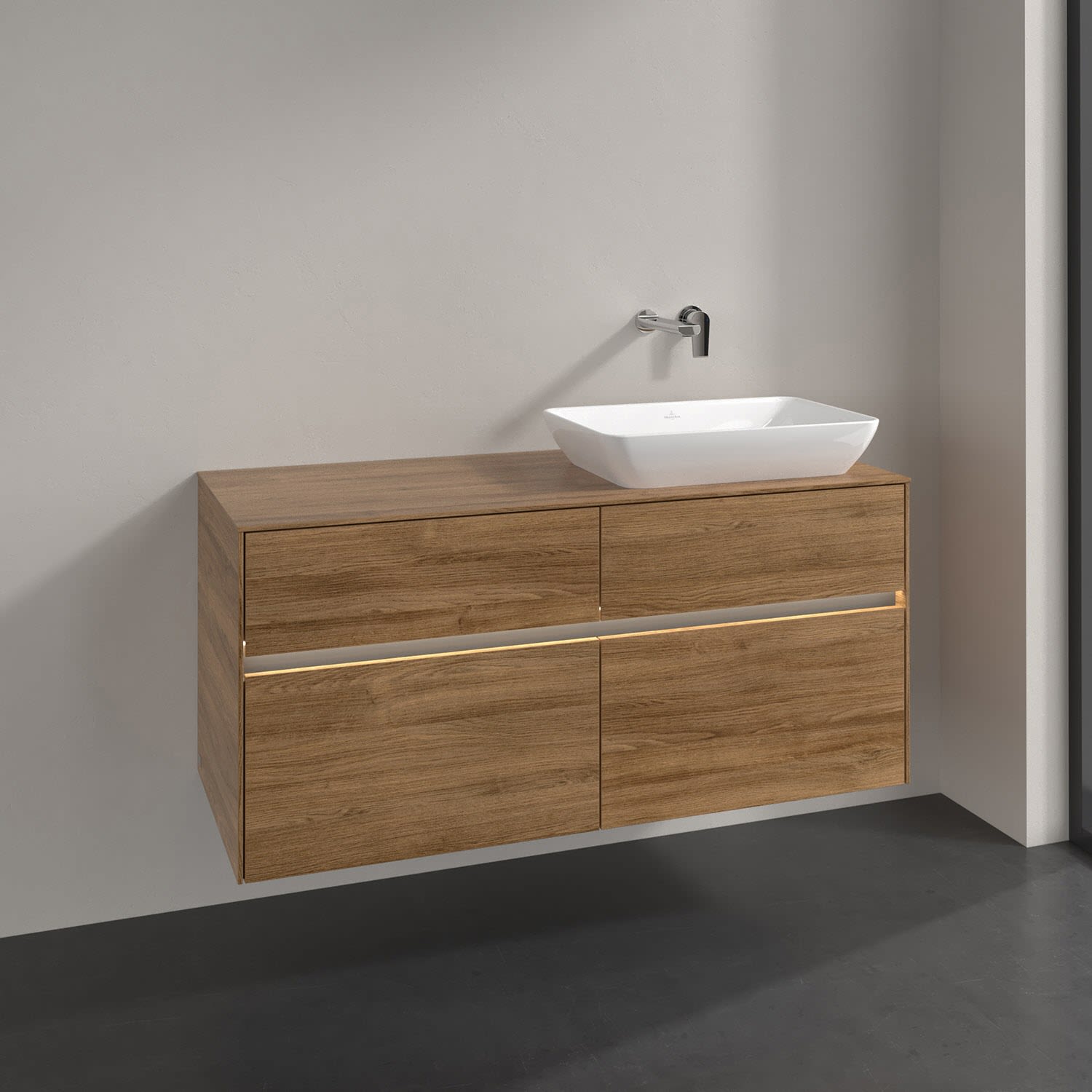 Villeroy & Boch Collaro Waschtischunterschrank 126 x 48 cm, mit 4 Auszügen und LED-Beleuchtung für Venticello Waschtisch, Badmöbel,