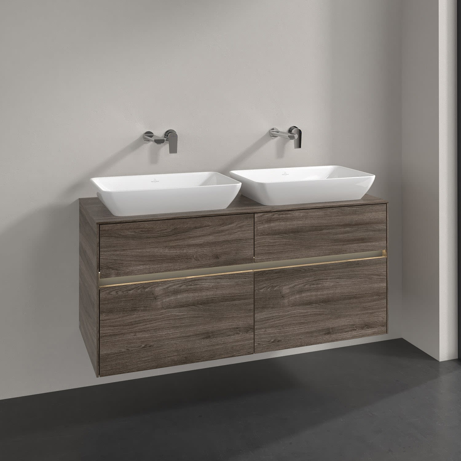 Villeroy & Boch Collaro Waschtischunterschrank 120 x 50 cm, mit 4 Auszügen und LED-Beleuchtung für 2 Venticello Waschtische, Badmöbel,