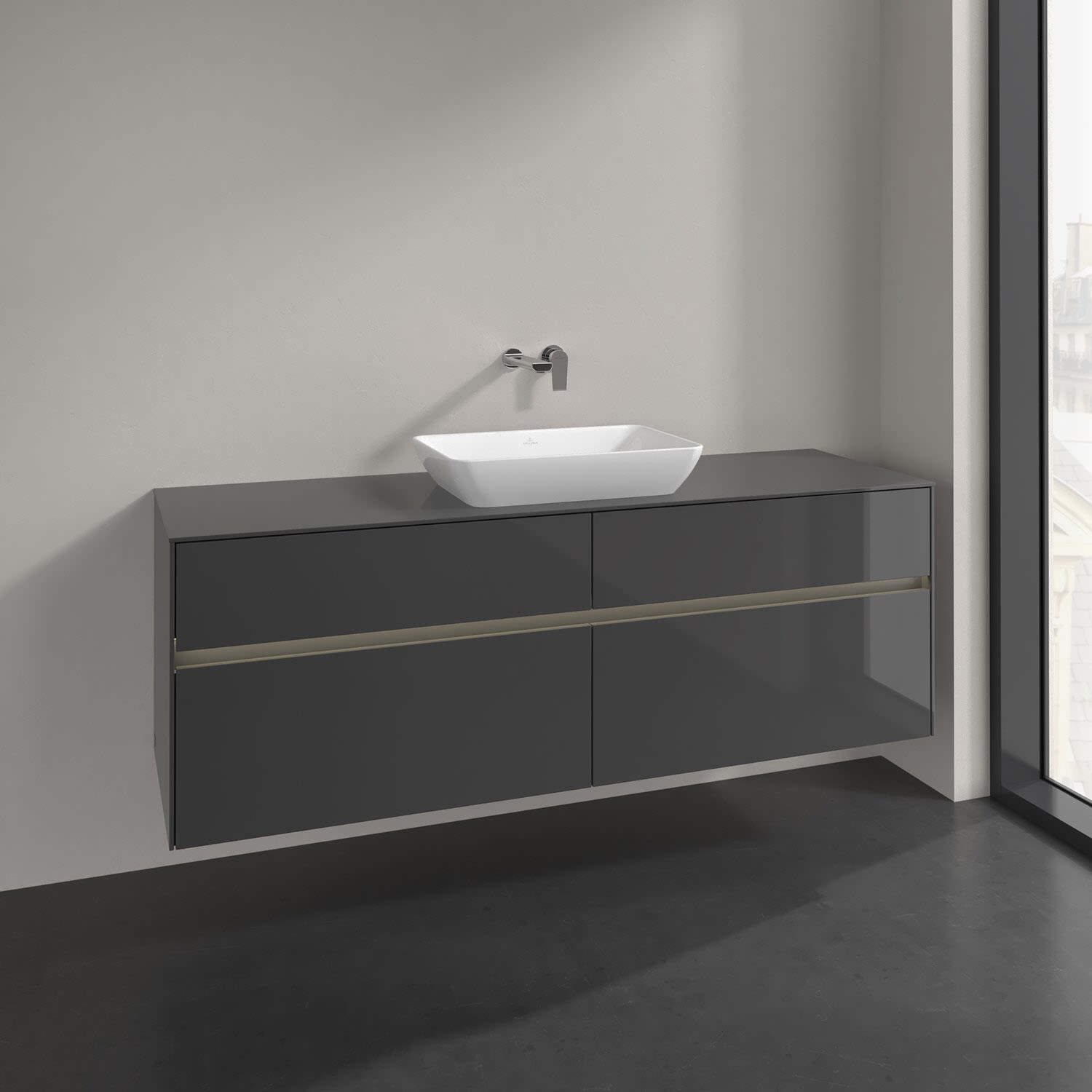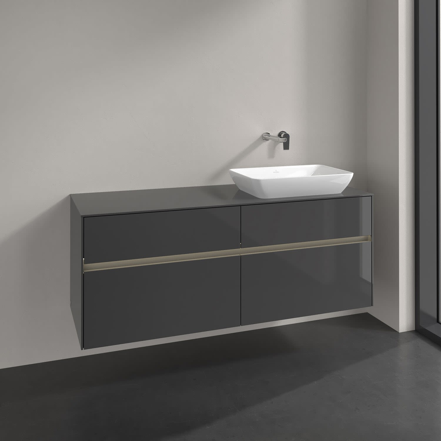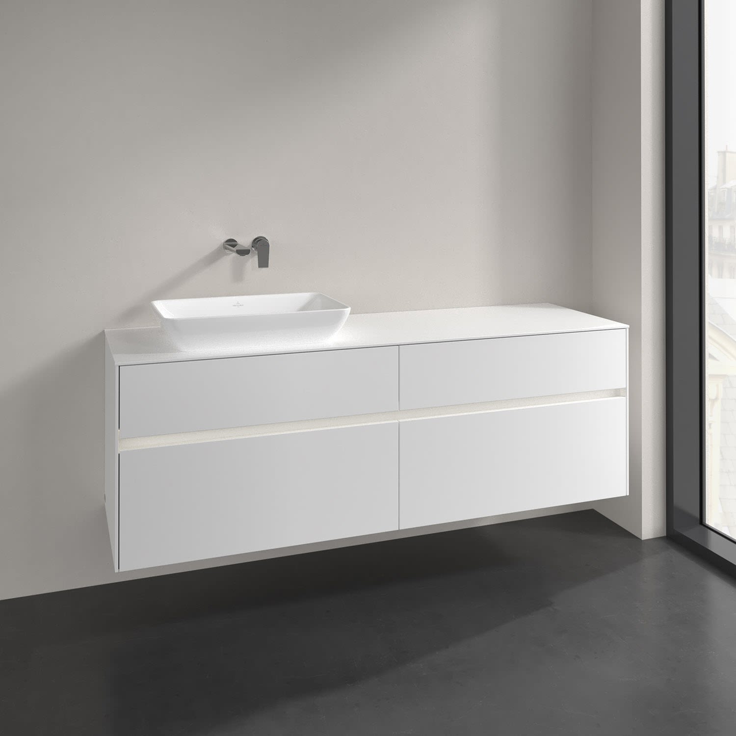 Villeroy & Boch Collaro Waschtischunterschrank 160 x 50 cm, mit 4 Auszügen und LED-Beleuchtung für Venticello Waschtisch, Badmöbel,