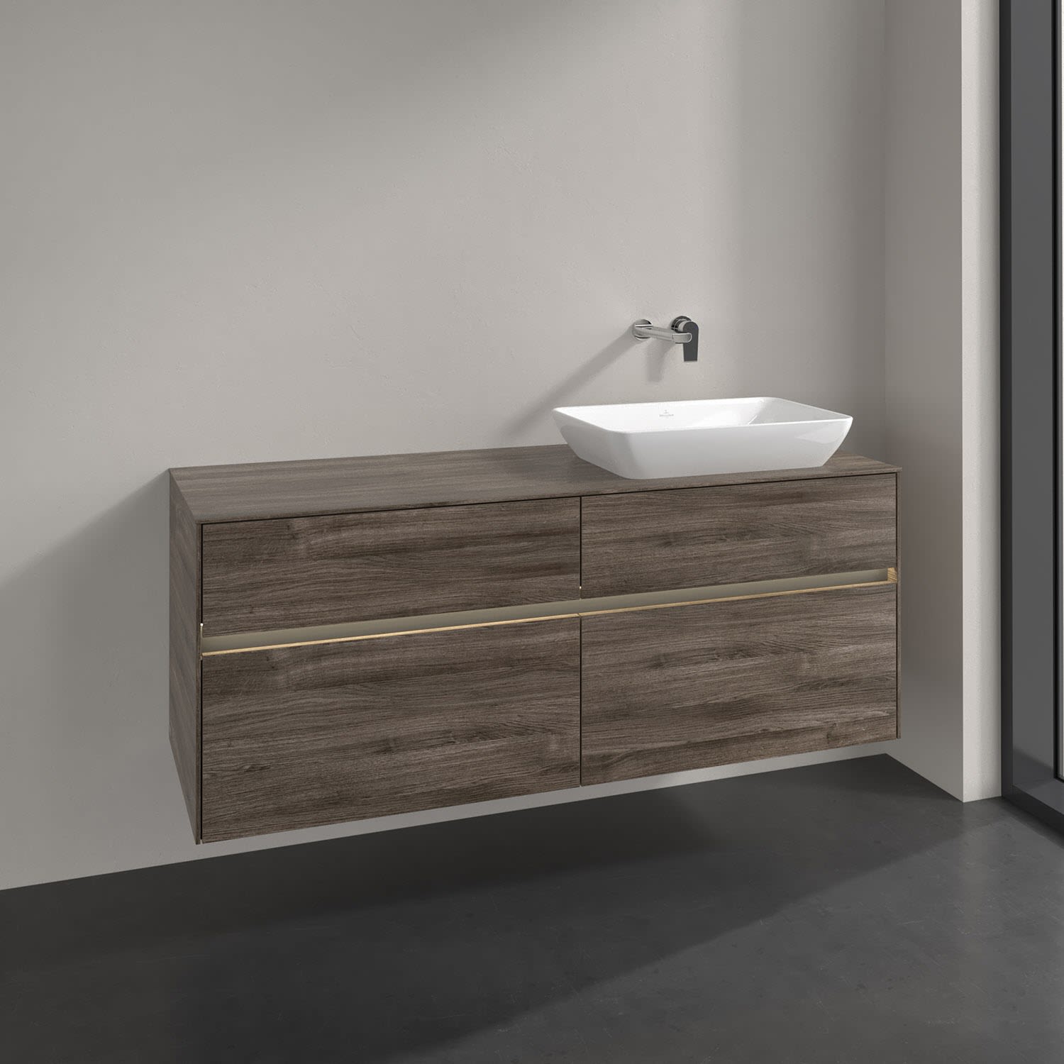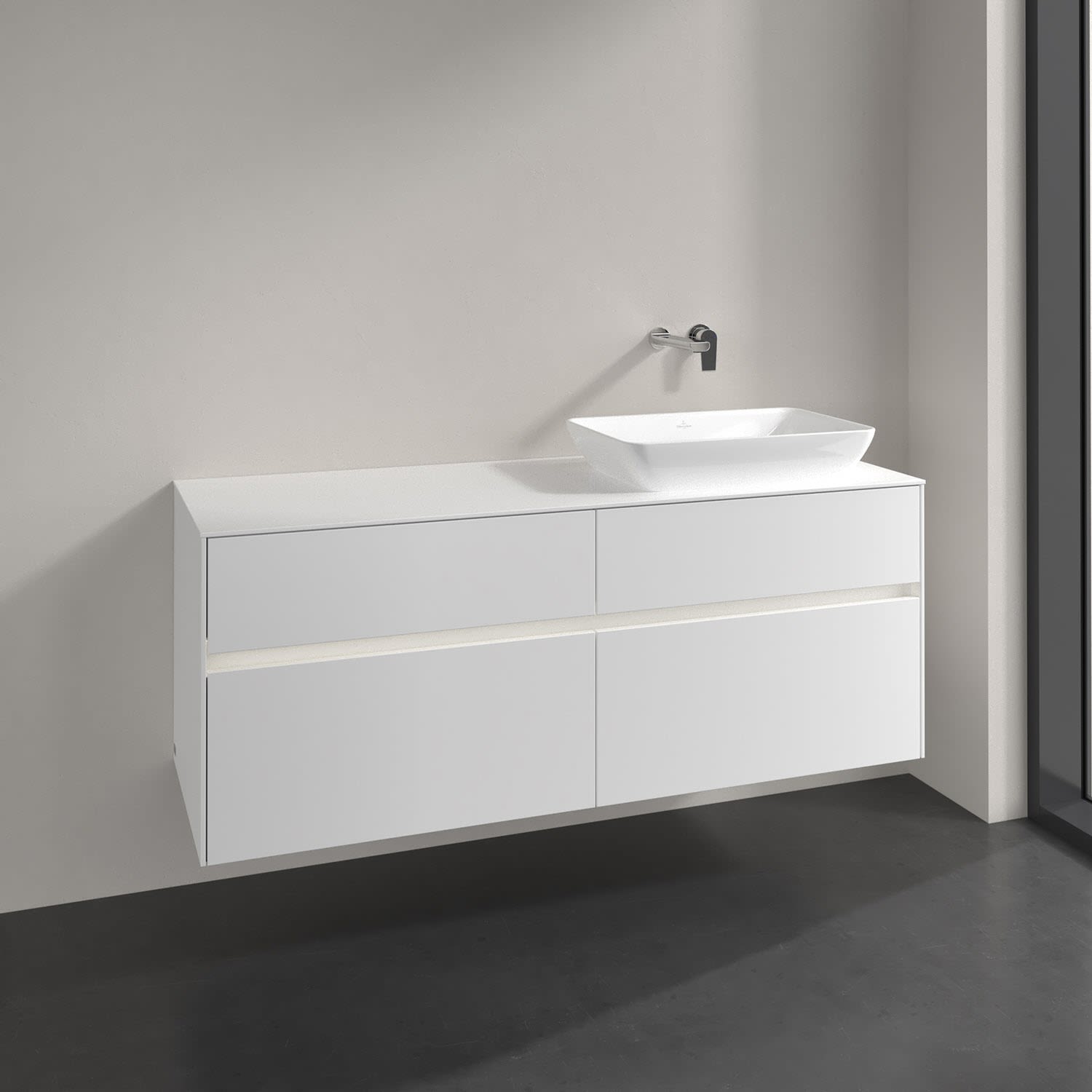 Villeroy & Boch Collaro Waschtischunterschrank 140 x 50 cm, mit 4 Auszügen und LED-Beleuchtung für Venticello Waschtisch, Badmöbel,