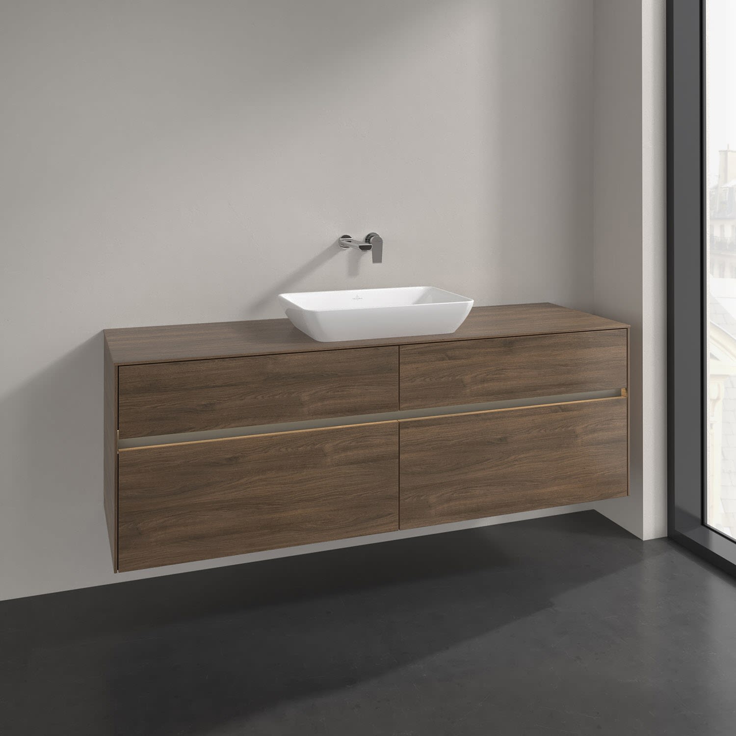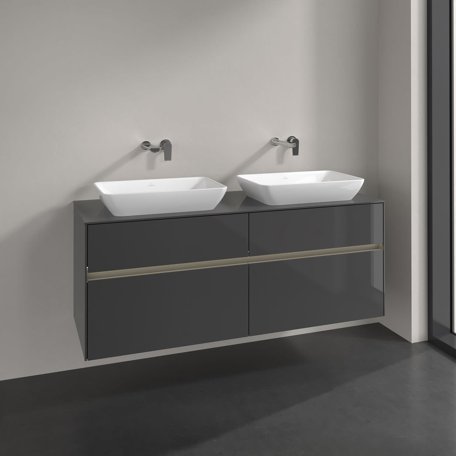 Villeroy & Boch Collaro Waschtischunterschrank 160 x 50 cm, mit 4 Auszügen und LED-Beleuchtung für 2 Venticello Waschtische, Badmöbel,