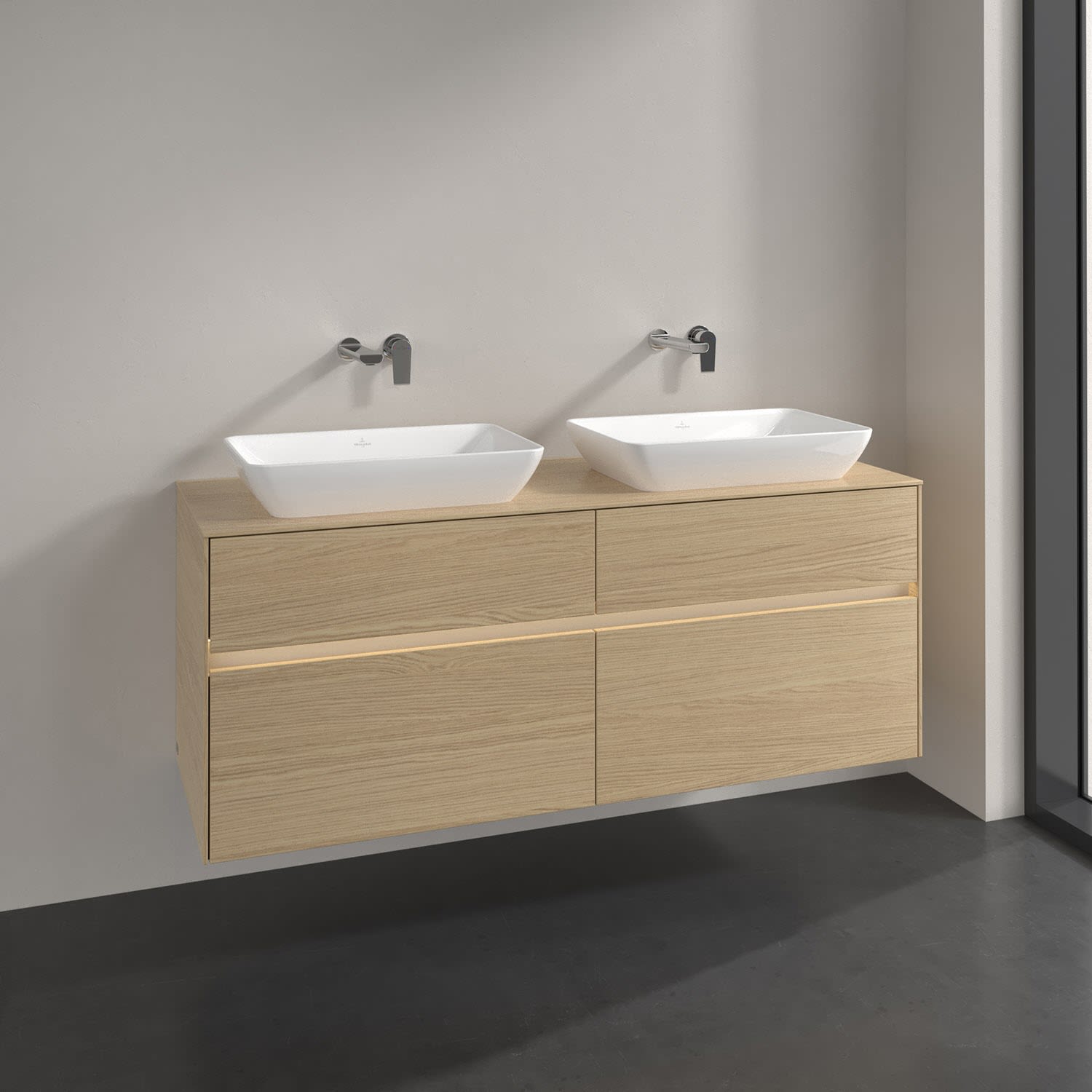 Villeroy & Boch Collaro Waschtischunterschrank 140 x 50 cm, mit 4 Auszügen und LED-Beleuchtung für 2 Venticello Waschtische, Badmöbel,