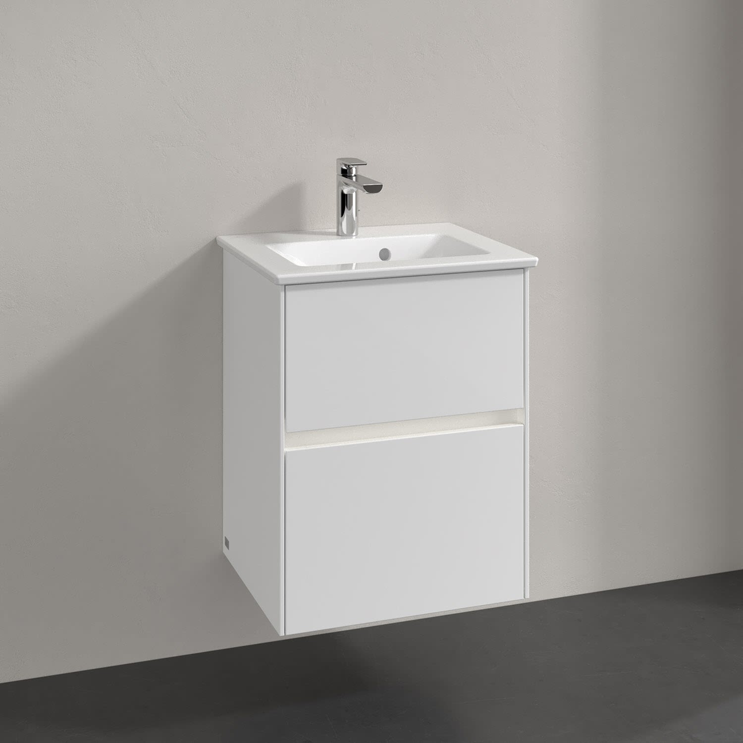 Villeroy & Boch Collaro Waschtischunterschrank 47 x 40 cm, mit 2 Auszügen und LED-Beleuchtung für Venticello Waschtisch, Badmöbel,