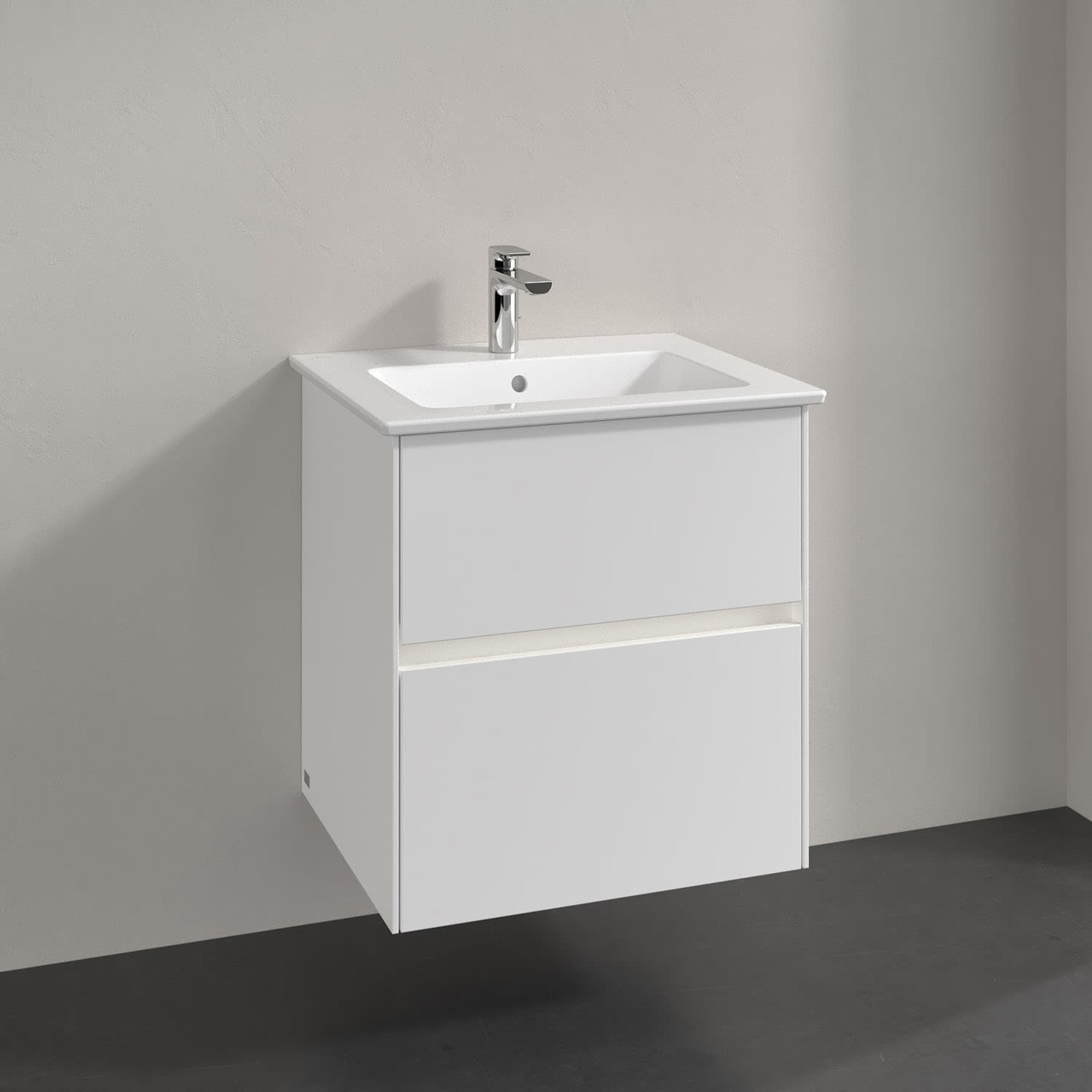 Villeroy & Boch Collaro Waschtischunterschrank 56 x 48 cm, mit 2 Auszügen und LED-Beleuchtung für Venticello Waschtisch, Badmöbel,