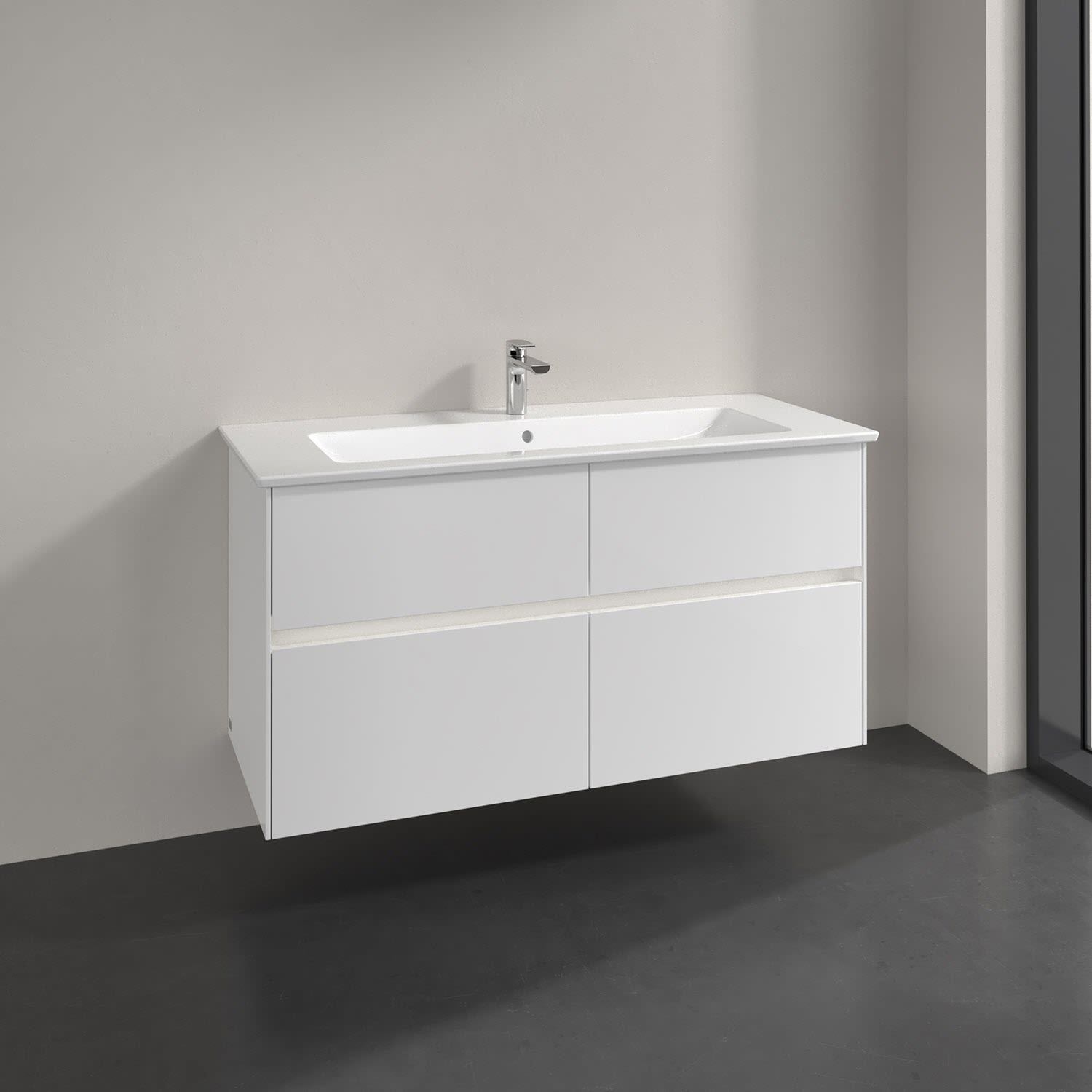 Villeroy & Boch Collaro Waschtischunterschrank 116 x 48 cm, mit 4 Auszügen und LED-Beleuchtung für Venticello Waschtisch, Badmöbel,