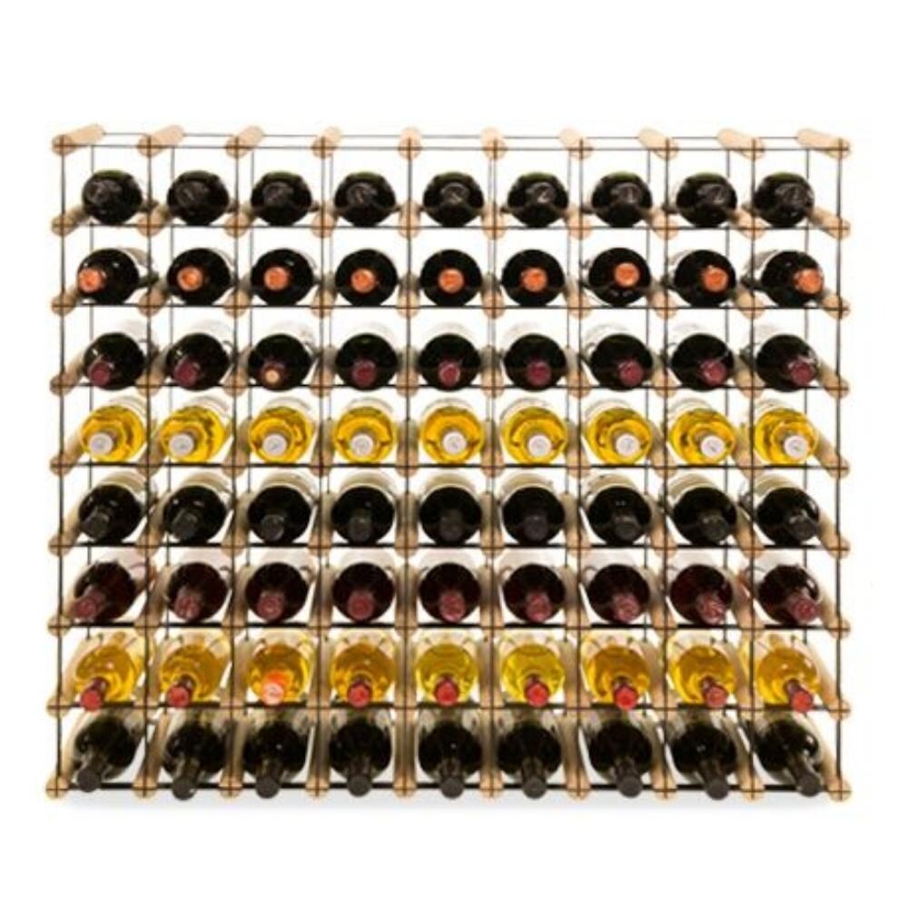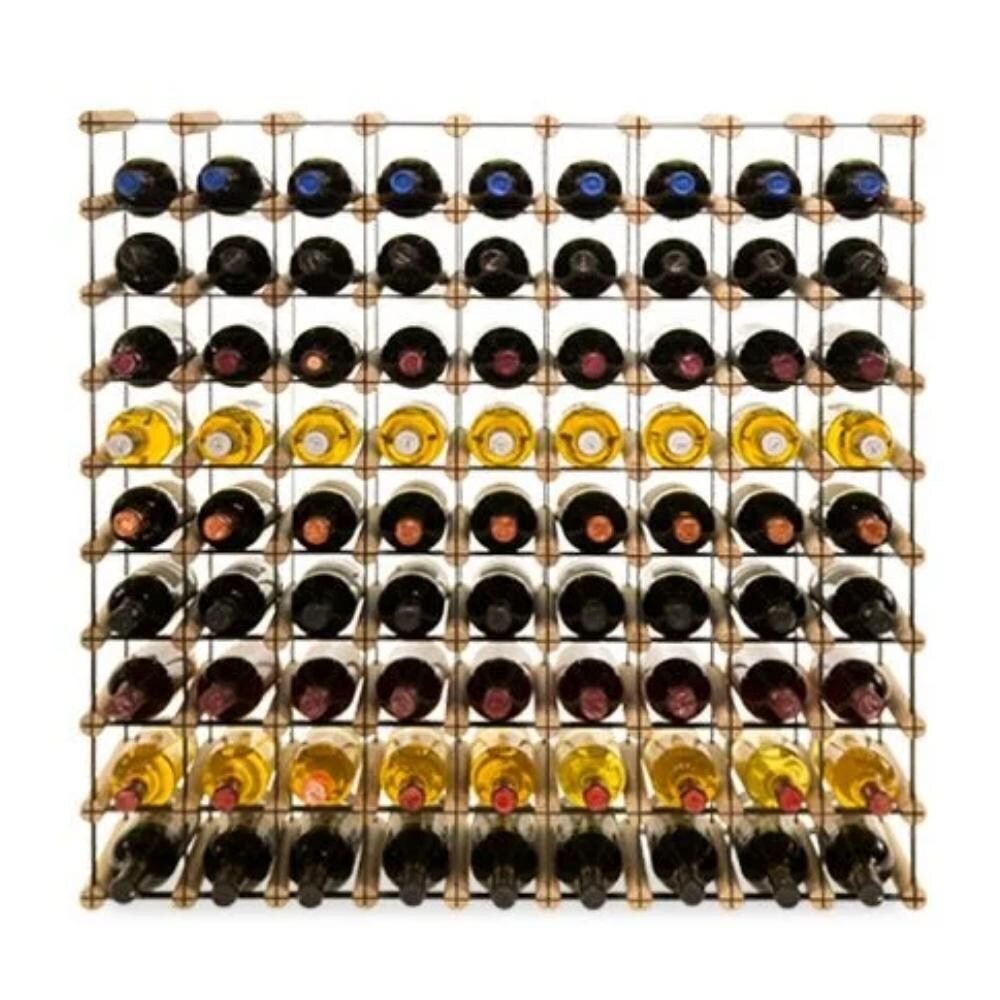 Modulares Weinregal VINOTECA MOD METAL | HxBxT 92,5x92,5x24,5cm | 9x9 Flaschen | Massives Kiefernholz | Natur