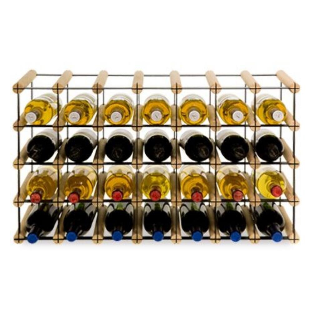 PROREGAL Modulares Weinregal VINOTECA MOD METAL | HxBxT 72,5x42,5x24,5cm | 4x7 Flaschen | Massives Kiefernholz | Natur | Flaschenregal