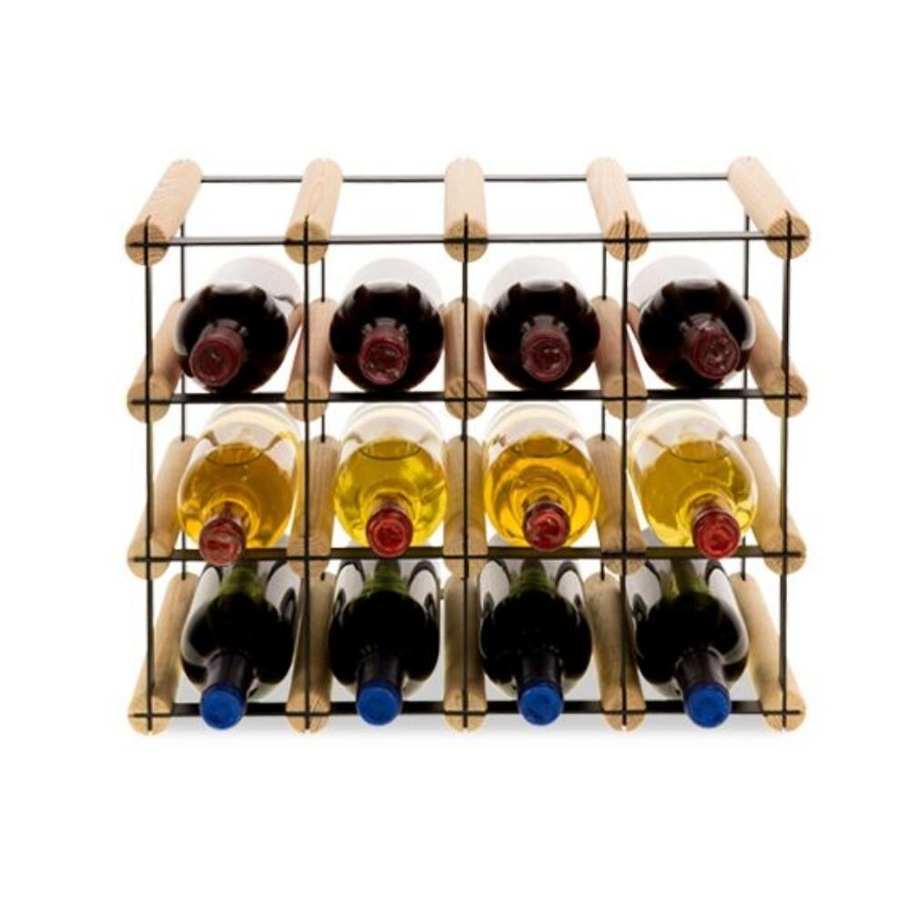 PROREGAL Modulares Weinregal VINOTECA MOD METAL | HxBxT 32,5x42,5x24,5cm | 4x3 Flaschen | Massives Kiefernholz | Natur | Flaschenregal