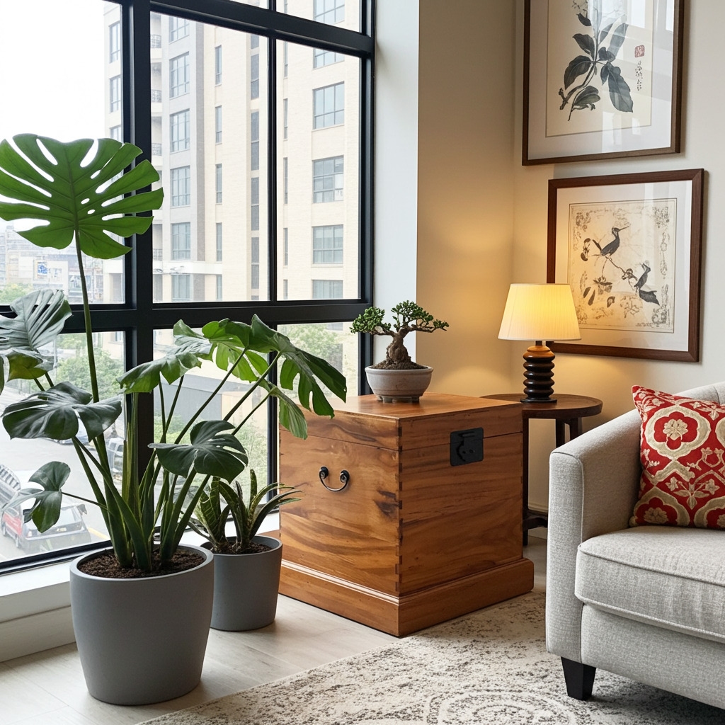 OPIUM OUTLET Truhe Kasten Kiste Box Aufbewahrung Möbel aus Holz "CHEST-01" braun mit Deckel Schatztruhe Vintage kolonial chinesisch asiatisch