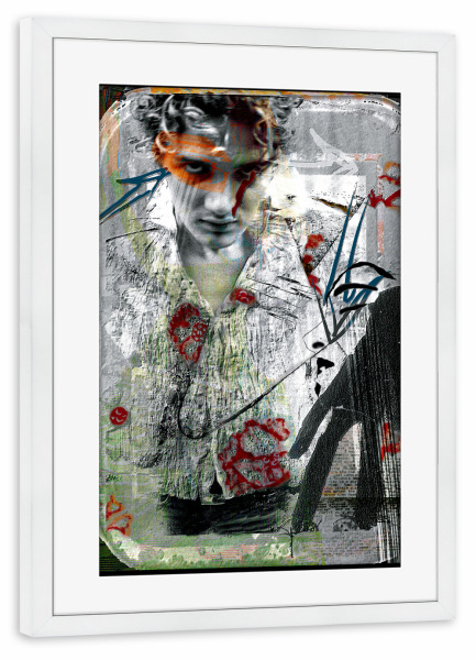 Poster mit Rahmen weiß "Hommedemonpays" artboxONE - Abstrakt,Retro - Portrait,Streetart,Street,Urban,Paris,Mirror,Graffiti,Artwork,Mann,Vintage,Retro