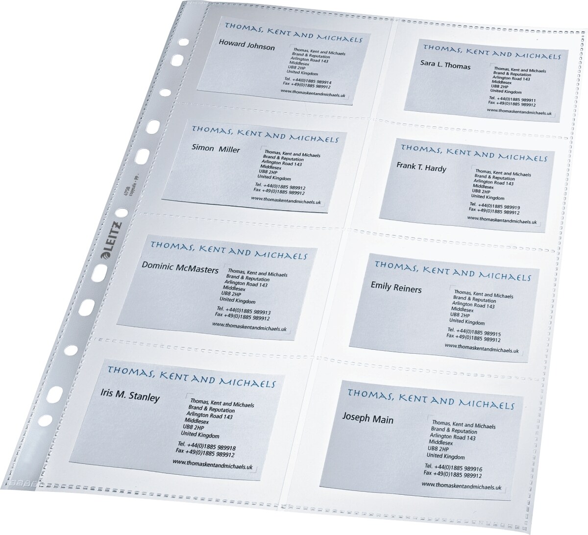 LEITZ Visitenkartenhüllen A4 8 Fächer 90x57mm glasklar VE=10x10 Stück