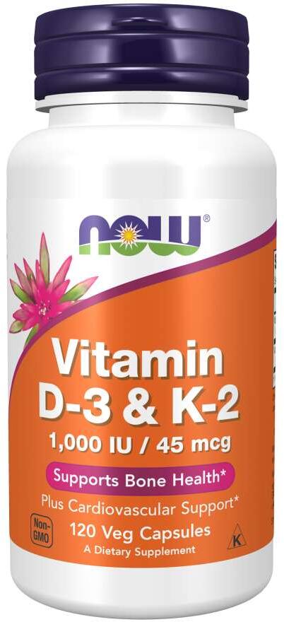 Now Foods Vitamin D3 & K2 1000 IU/45 mcg, 120 Kapseln