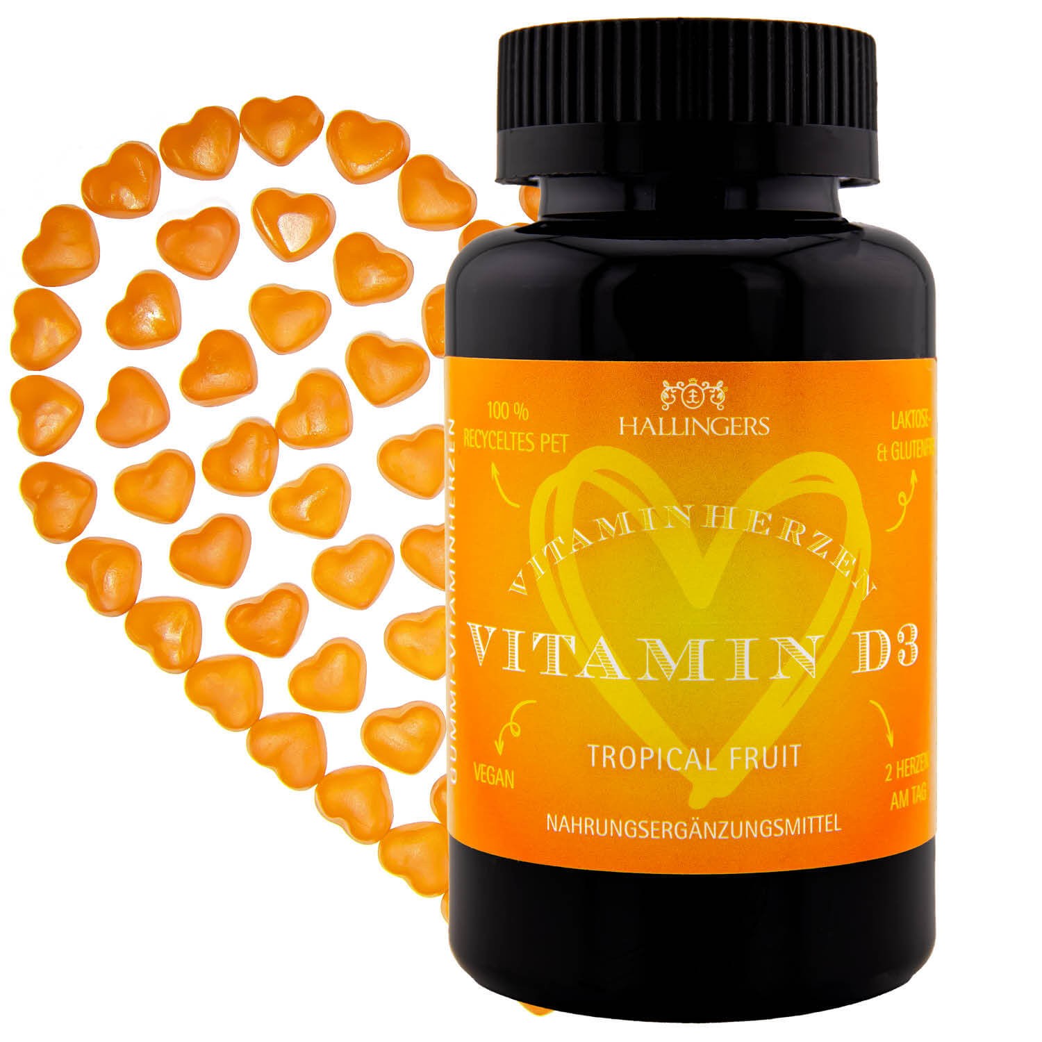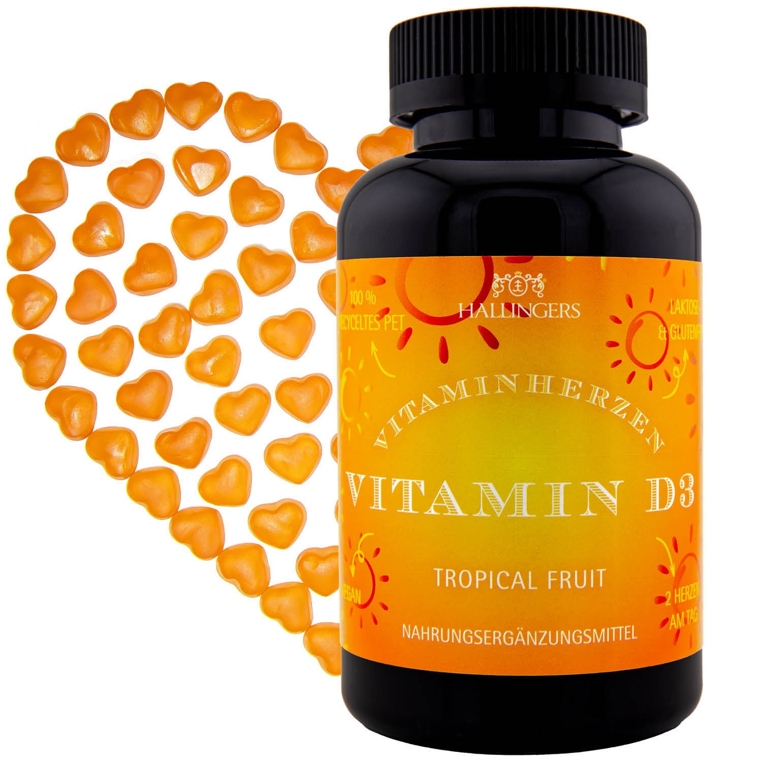 Vitaminherzen Tropical Fruit 60 vegane Gummies 1000 IE Vitamin D3 hochdosiert, 25 mcg pro Herz (120g) - Vitamin D3 Herz L