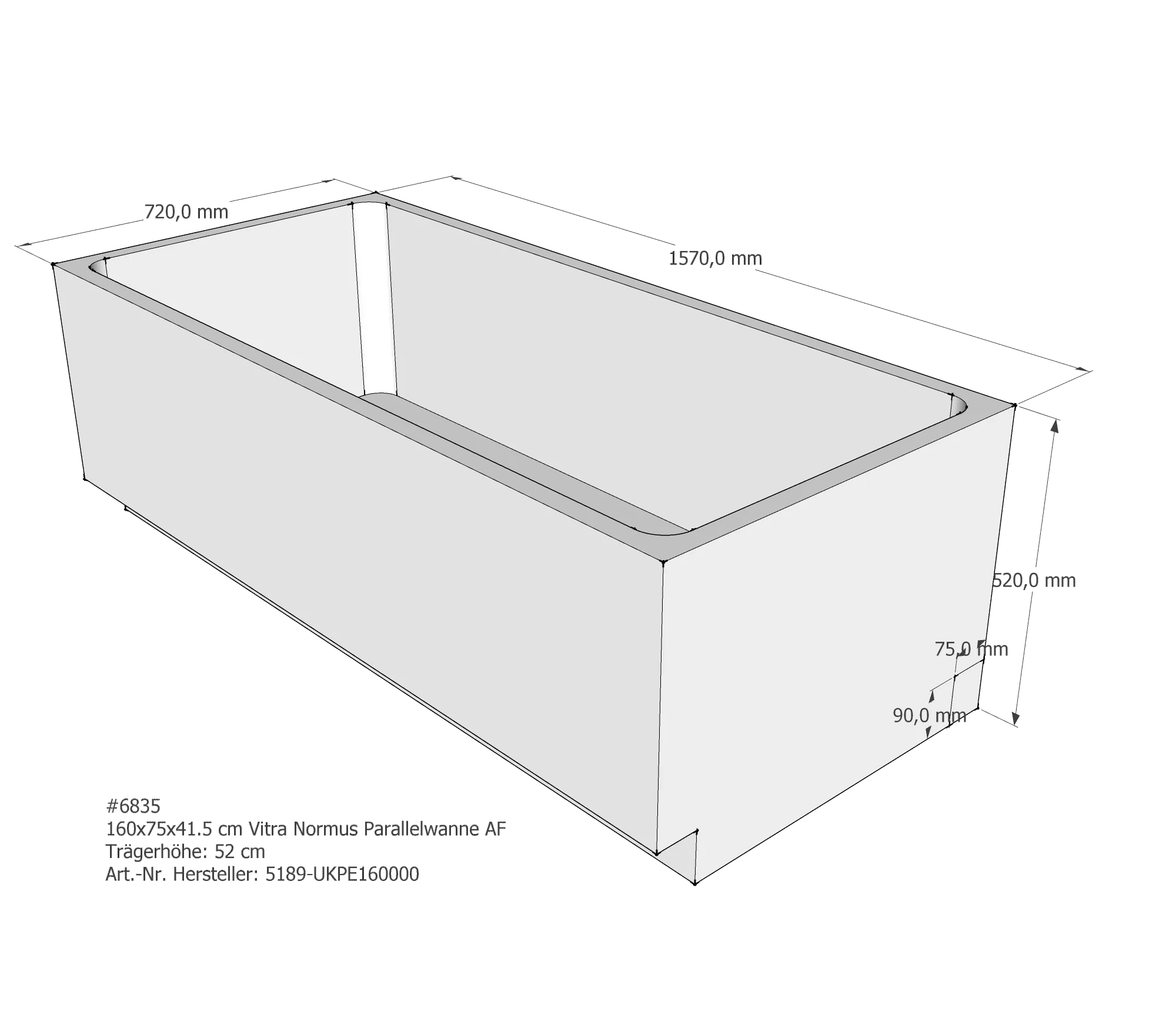 Badewannenträger passend für VitrA Normus 160 × 75 × 41,5 cm