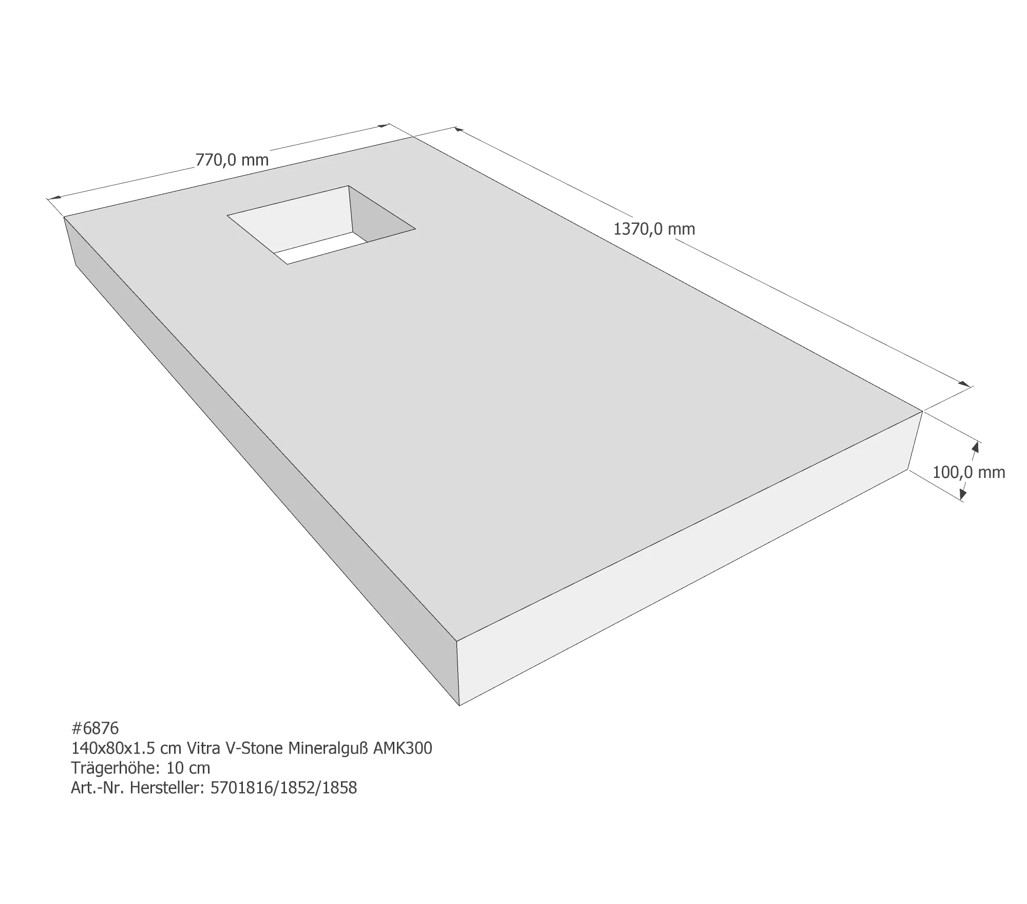 Duschwannenträger passend für VitrA V-Stone 140 × 80 × 1,5 cm